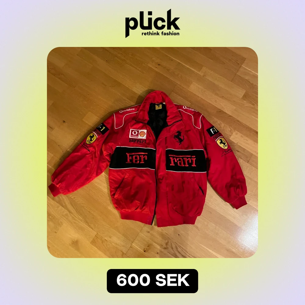 Säljer en vintage 90s röd nasqar Ferrari jacka med coola loggor och broderade detaljer. Jackan har dragkedja och långa ärmar, perfekt för racingfans. Detta är den riktiga vintagejackan som de nyproducerade är kopierade av.
