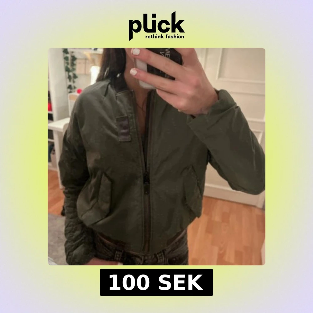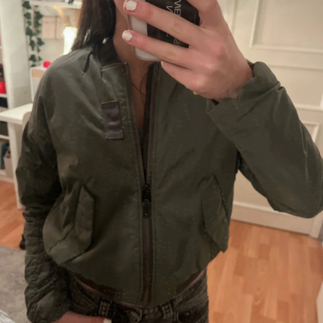 Snygg olivgrön bomberjacka med klassisk passform och dragkedja framtill. Jackan har två fickor och ribbade muddar vid ärmslut och midja. Perfekt för dig som vill ha en stilren och trendig look. Skriv för flera bilder så löser jag!