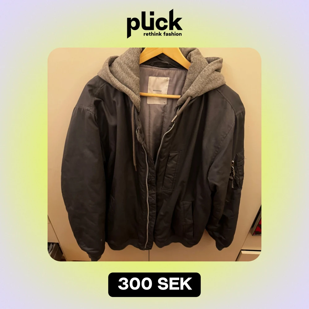Säljer en snygg grå bomberjacka från Reserved med en grå huva. Jackan har dragkedja och är perfekt för höst och vår. Den har en cool, avslappnad stil och är i mycket bra skick. Perfekt för att hålla stilen när det är lite kyligare ute!