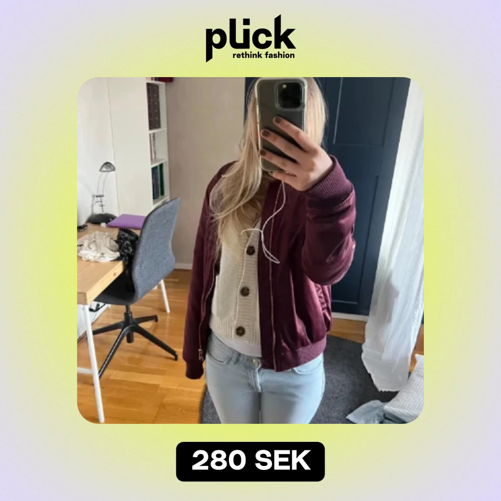 Såååå snygg bomberjacka i vinrött, jättesnygg nu till hösten❣️❣️ har endast testat den då den var lite lång i armarna🩷🩷 (lånade bilder av tjejen jag köpte jackan av på Plick)