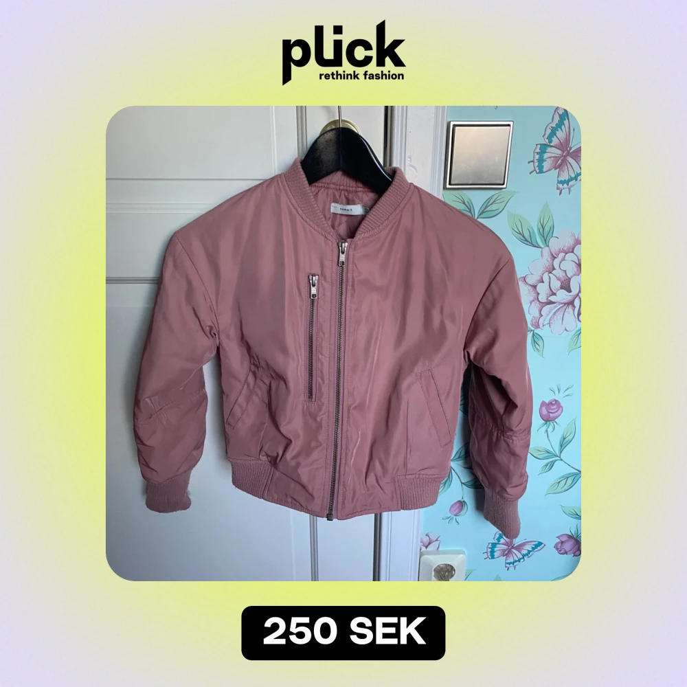 rosa bomberjacka för barn, väl använd men inga defekter. nypris 549kr. pris går att diskutera, hör av dig vid frågor💕