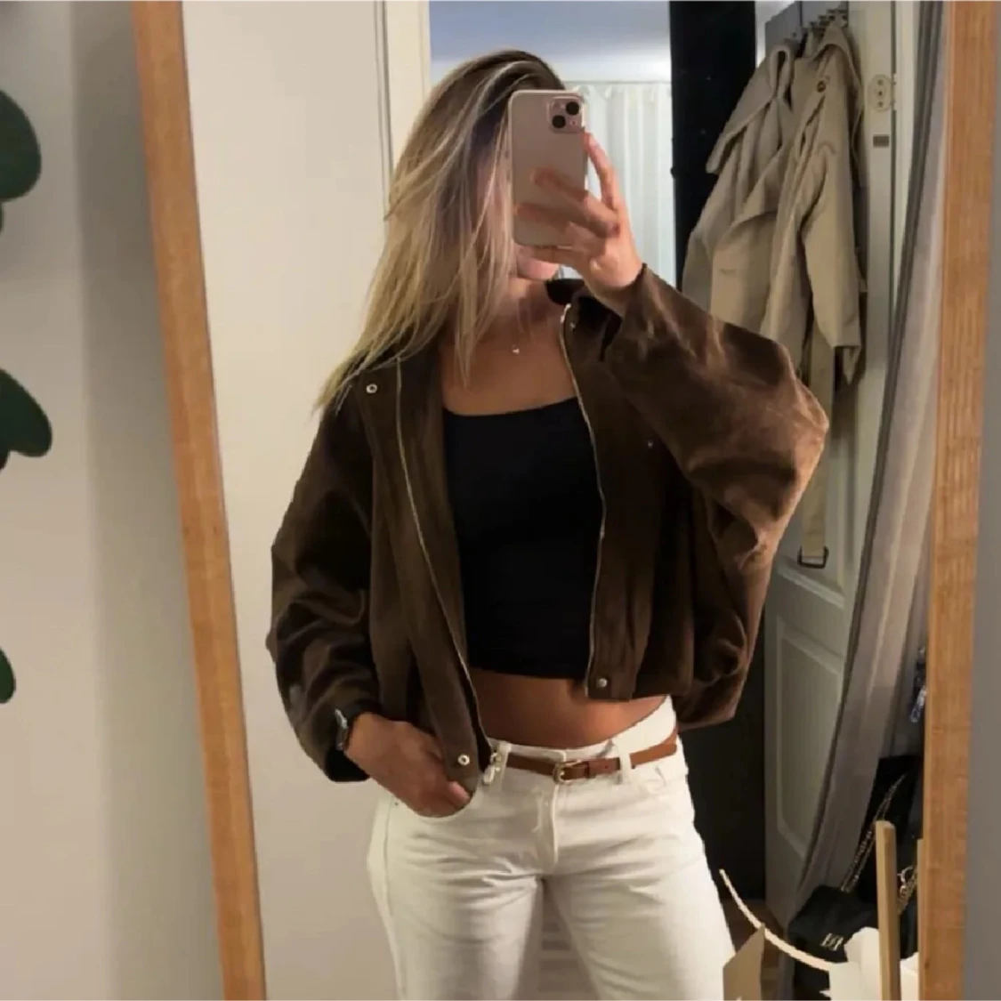 Säljer denna populära slutsålda mockajacka från Zara. I storlek s. Kan förhandla om pris. 💖en brun oversized bomberjacka i mjuk mocka-look. Jackan har klassisk krage, långa ärmar och stängs med knappar framtill. Perfekt för dig som gillar en chill och trendig stil med lite extra volym i ärmarna.