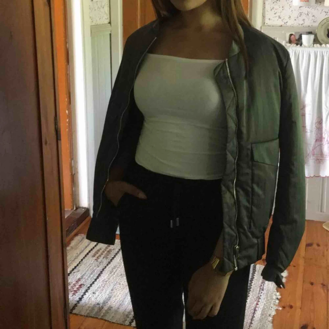 Khaki grön bomberjacka! Använd vid 1/2 tillfällen, säljs då den ej kommer till användning! Den är super snygg
