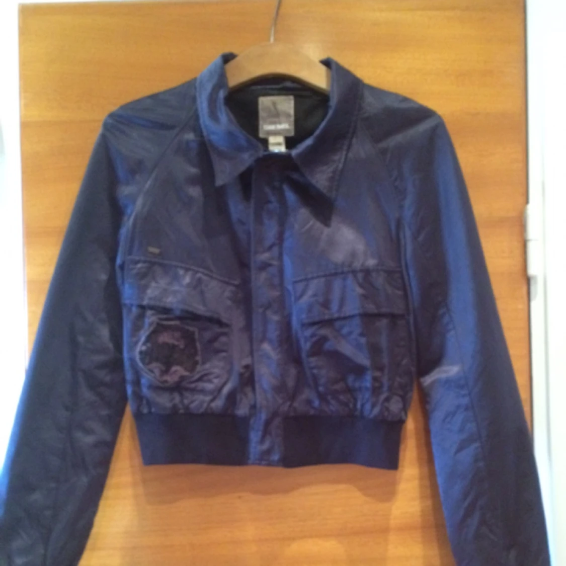 Mörkblå Jacquard mönstrad bomberjacka i siden från Whyred. Stl Small. Bra skick.