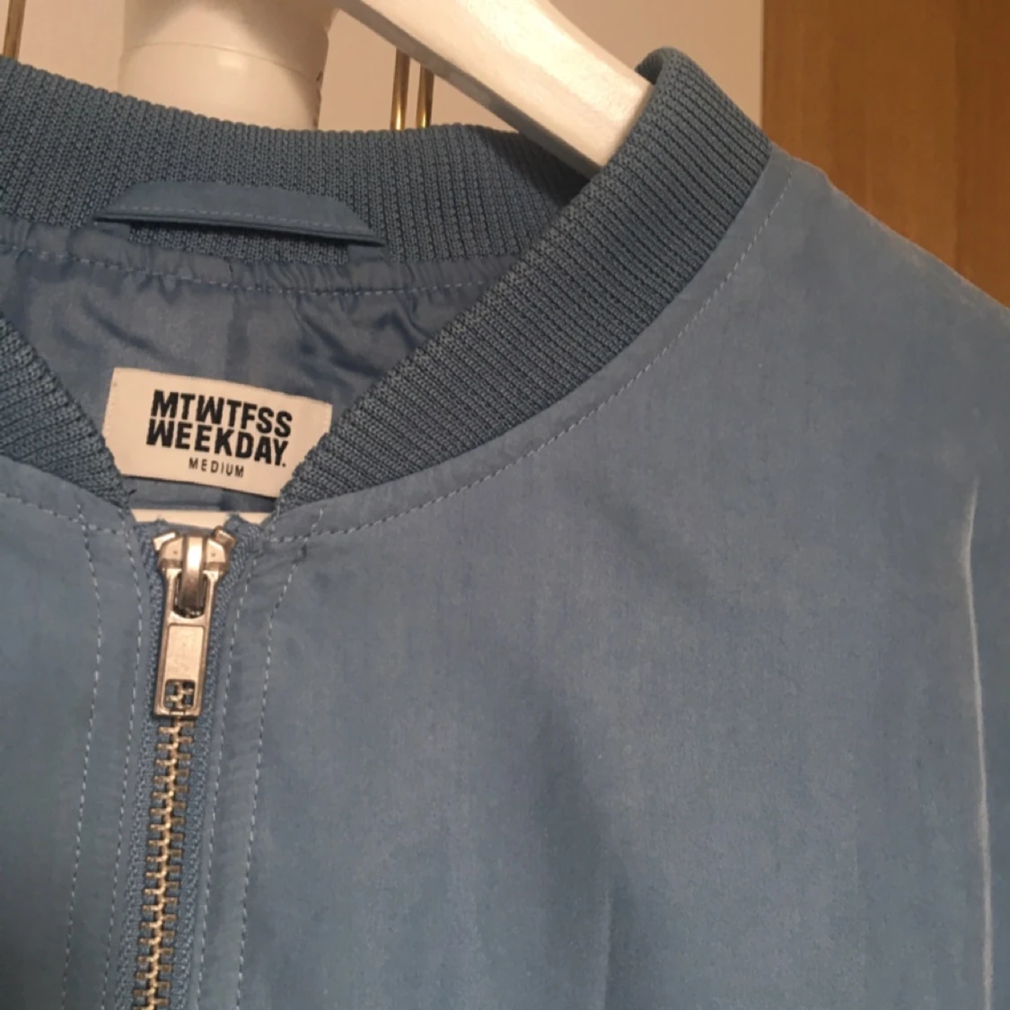 Jättefin, oversized bomberjacka i blå färg från Weekday. Endast använd två gånger så är i nyskick. Frakt tillkommer 🌿