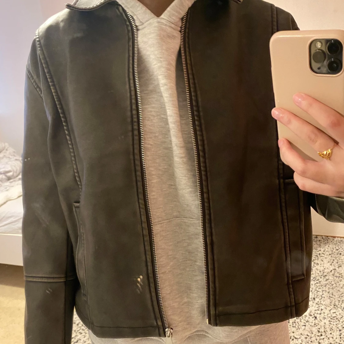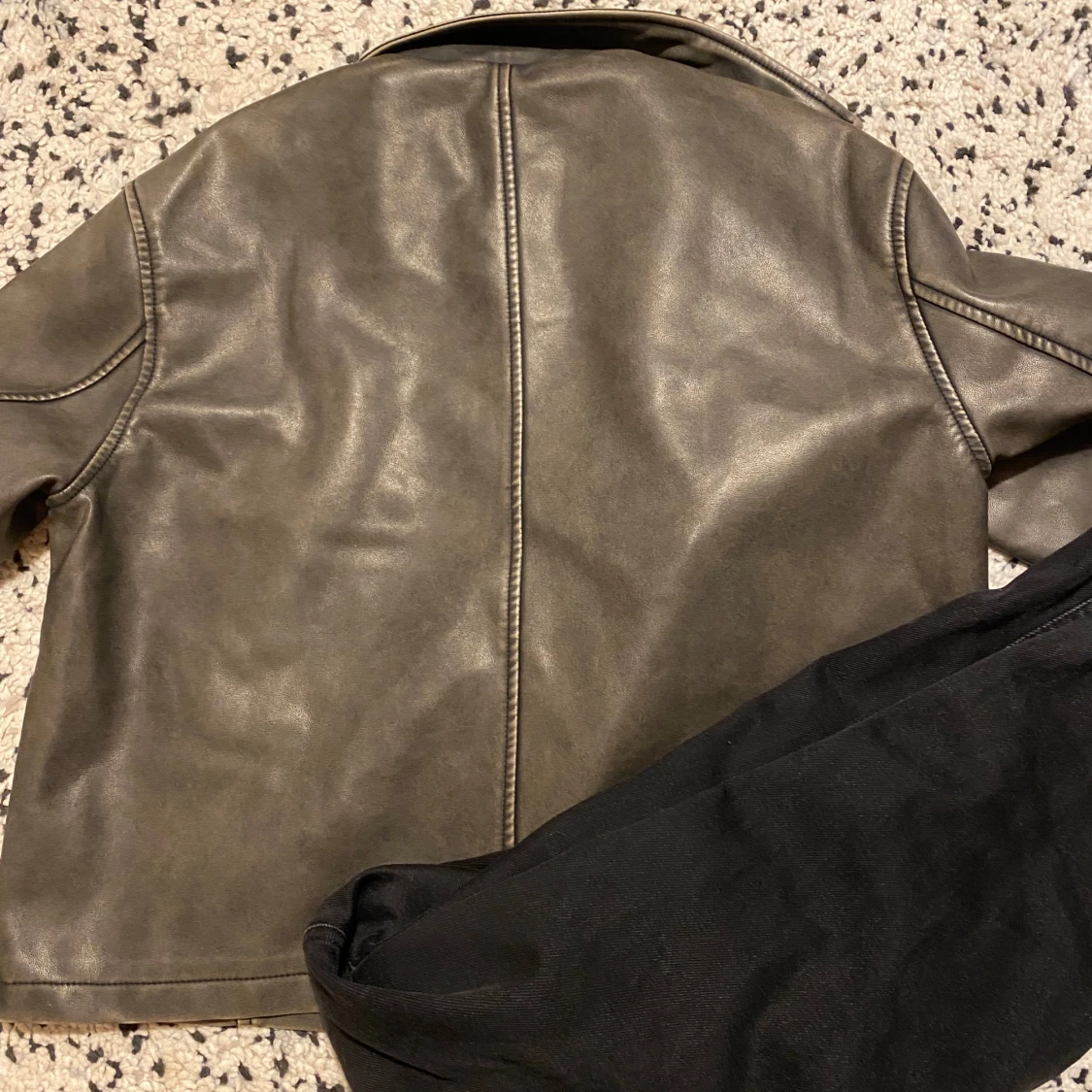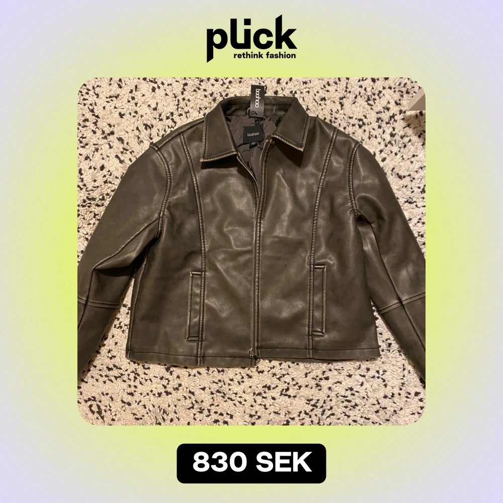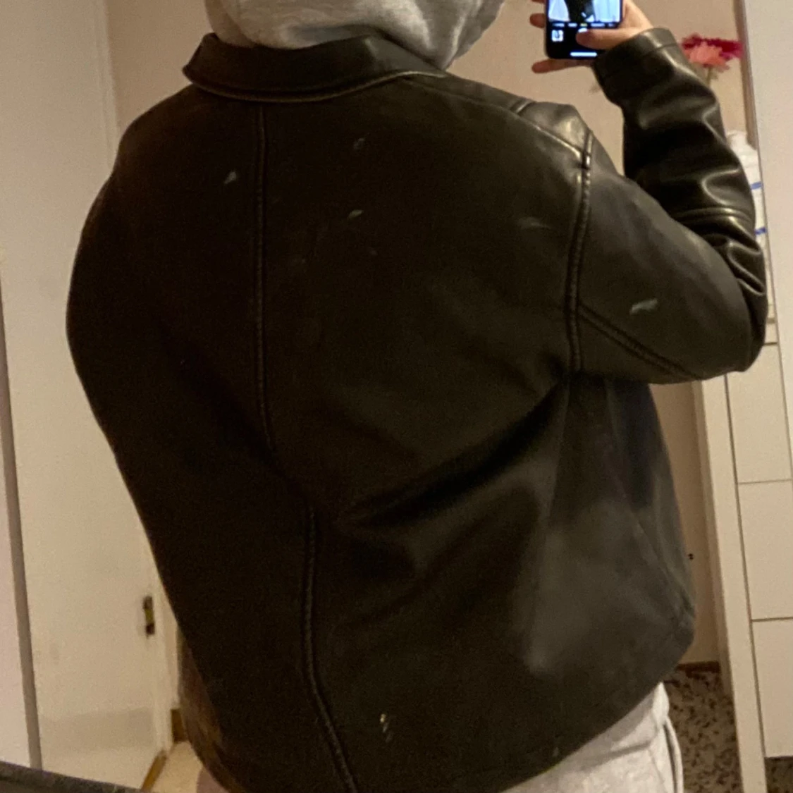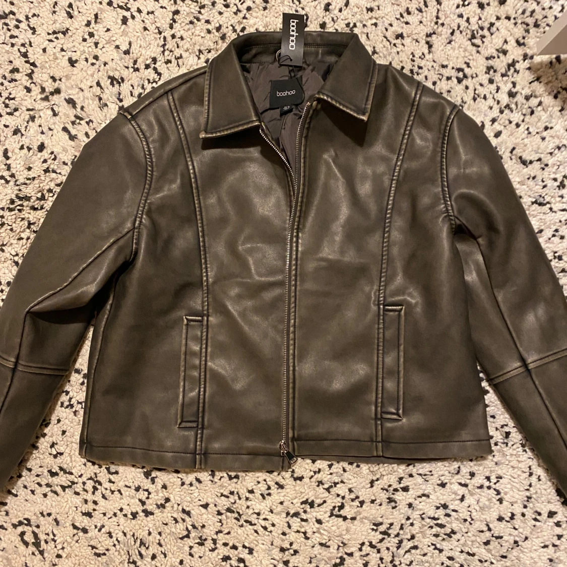 Säljer en snygg svart skinnjacka från Boohoo i mycket bra skick. Jackan har en dragkedja framtill och två fickor. Perfekt för höst och vår, med en stilren look som passar till det mesta. Jackan har långa ärmar och en klassisk krage.