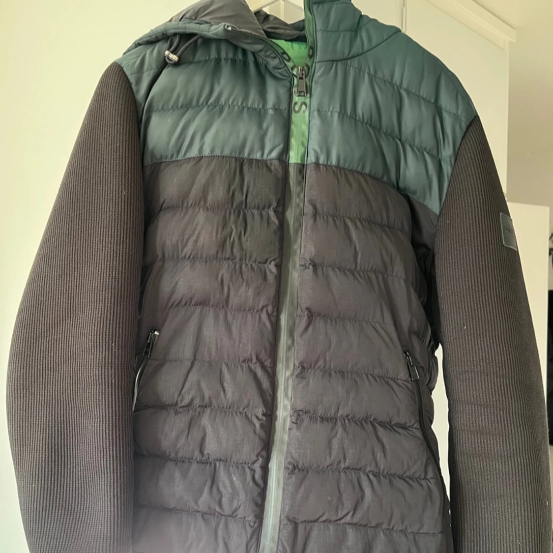 Snygg jacka från BOSS i grått och grönt med dragkedja och huva. Jackan har långa ärmar och är quiltad för extra värme. Perfekt för vår dagar och sommarkvällar.