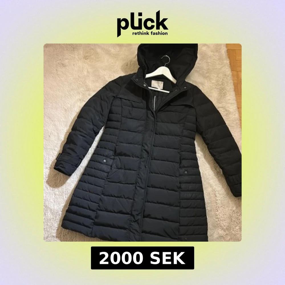 Svart lång pufferjacka från BOSS med huva och dragkedja framtill. Jackan har quiltad design, två fickor med knapp och justerbara ärmslut. Den är köpt i Köpenhamn för många år sedan. Märker på insidan har blivit lite smutsig men den har kemtvättats i början av året. Den har ett jack på insidan vilket givetvis går att sy ihop vilket gör att priset blir lägre. Den hade också ett bälte som tyvärr inte finns med.