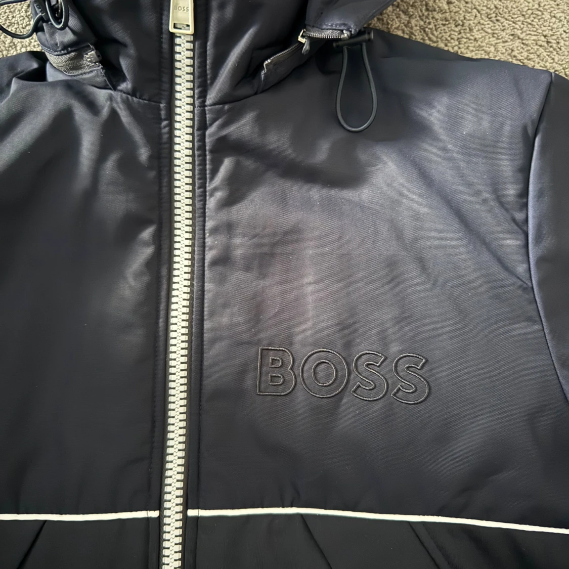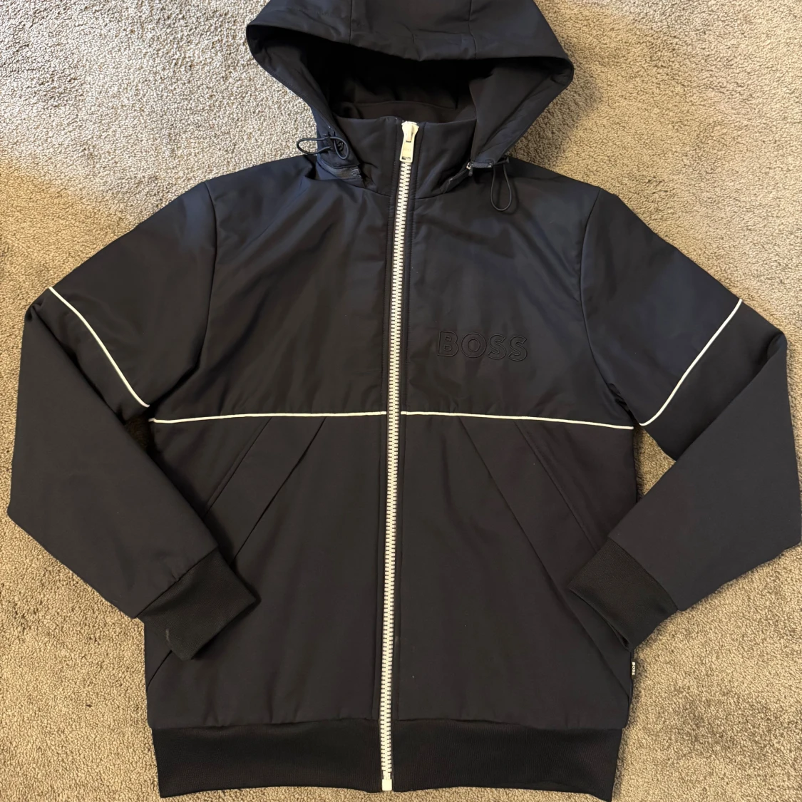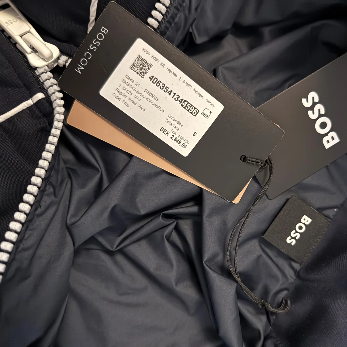 En sjukt snygg boss jacka med vita detaljer HELT OANVÄND prislapp är till och med kvar, jackan är i storlek S