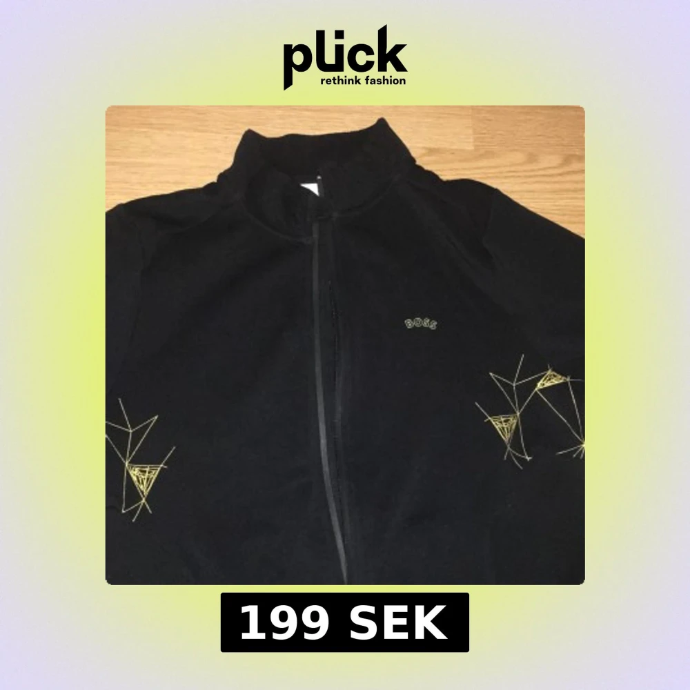 Svart vindjacka från BOSS med coola geometriska broderier i gult på ärmarna. Jackan har dragkedja framtill och liten ståkrage. Stilren logga på bröstet och mjukt material som känns skönt mot huden. Perfekt för dig som gillar minimalistisk design med en twist. S för barn