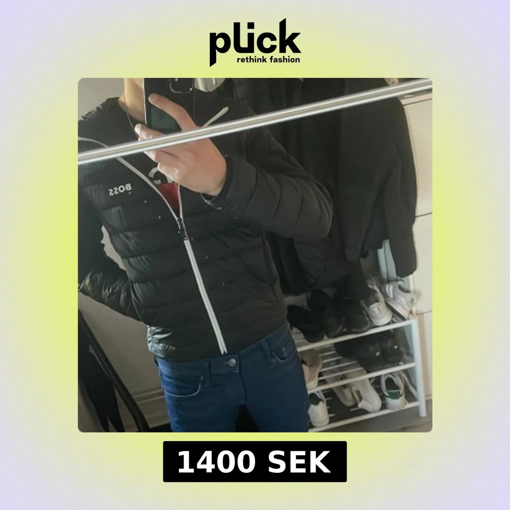 Snygg svart pufferjacka från BOSS med huva och vit dragkedja. Jackan har quiltad design, raka linjer och logga på bröstet. Perfekt för kyliga dagar och enkel att matcha med olika outfits. Lätt och smidig att bära, passar dig som gillar stilren look. Skicka mycket bra/ knappt använd. Original pris: 3123 kr.