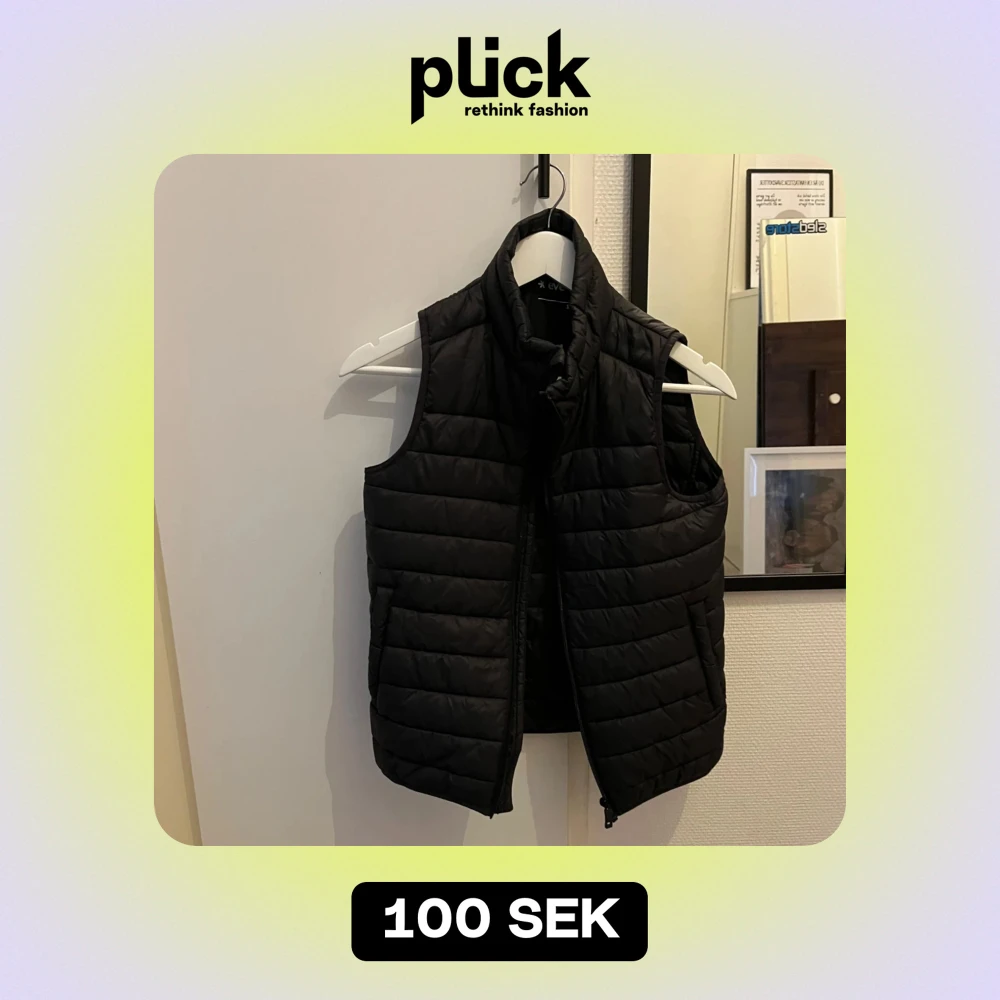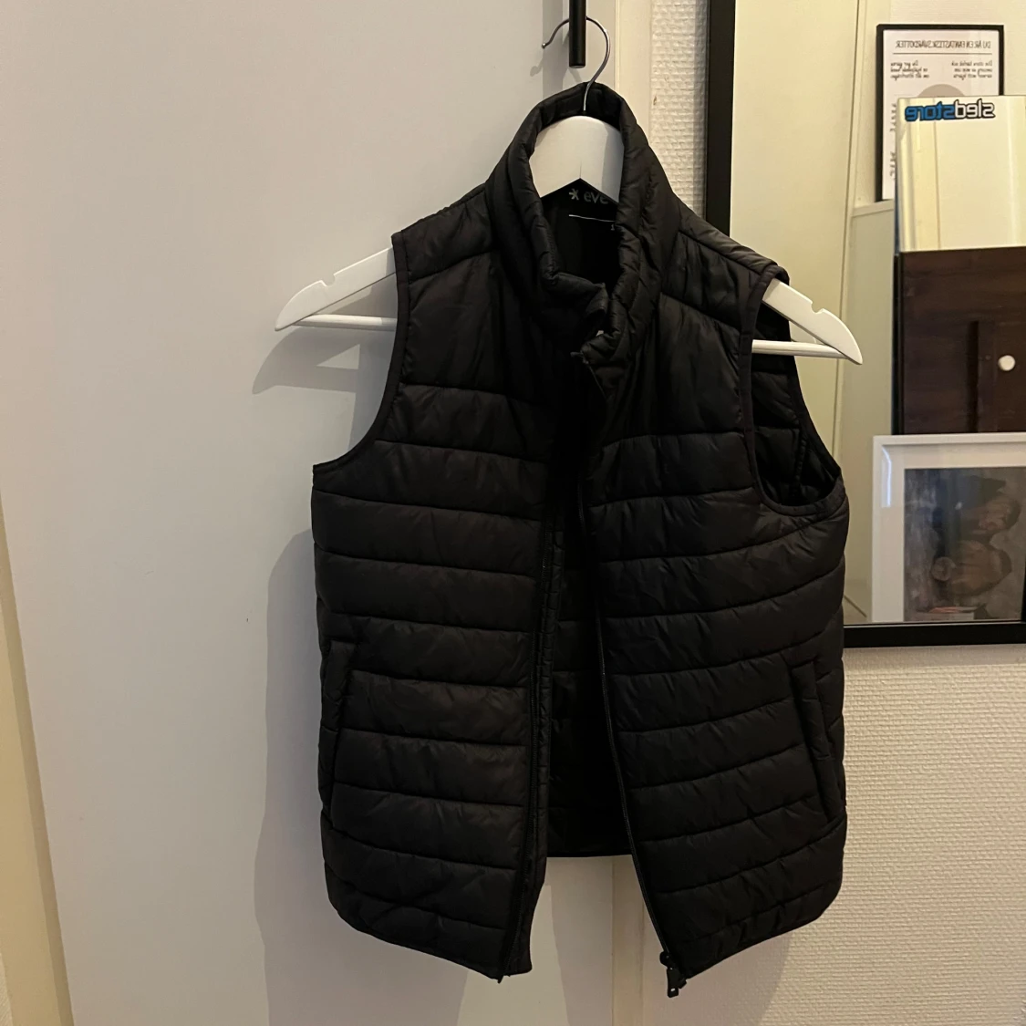 Säljer en stilren svart dunväst som är perfekt för kyliga dagar. Den ger en snygg look över en tröja eller hoodie. Passar både för vardag och lite mer uppklädda tillfällen. Västen har storlek 146/152 men passar som en XS