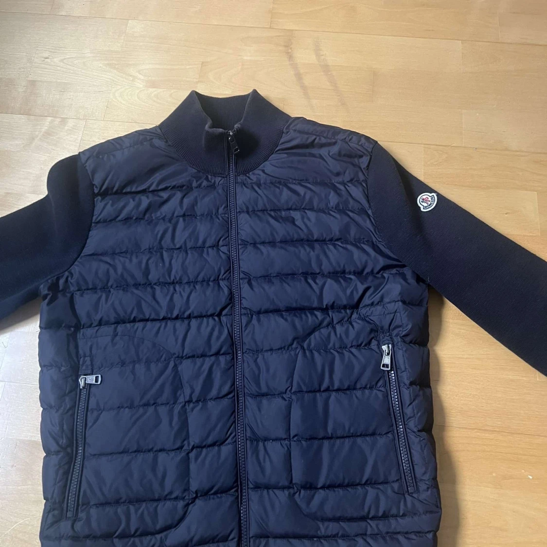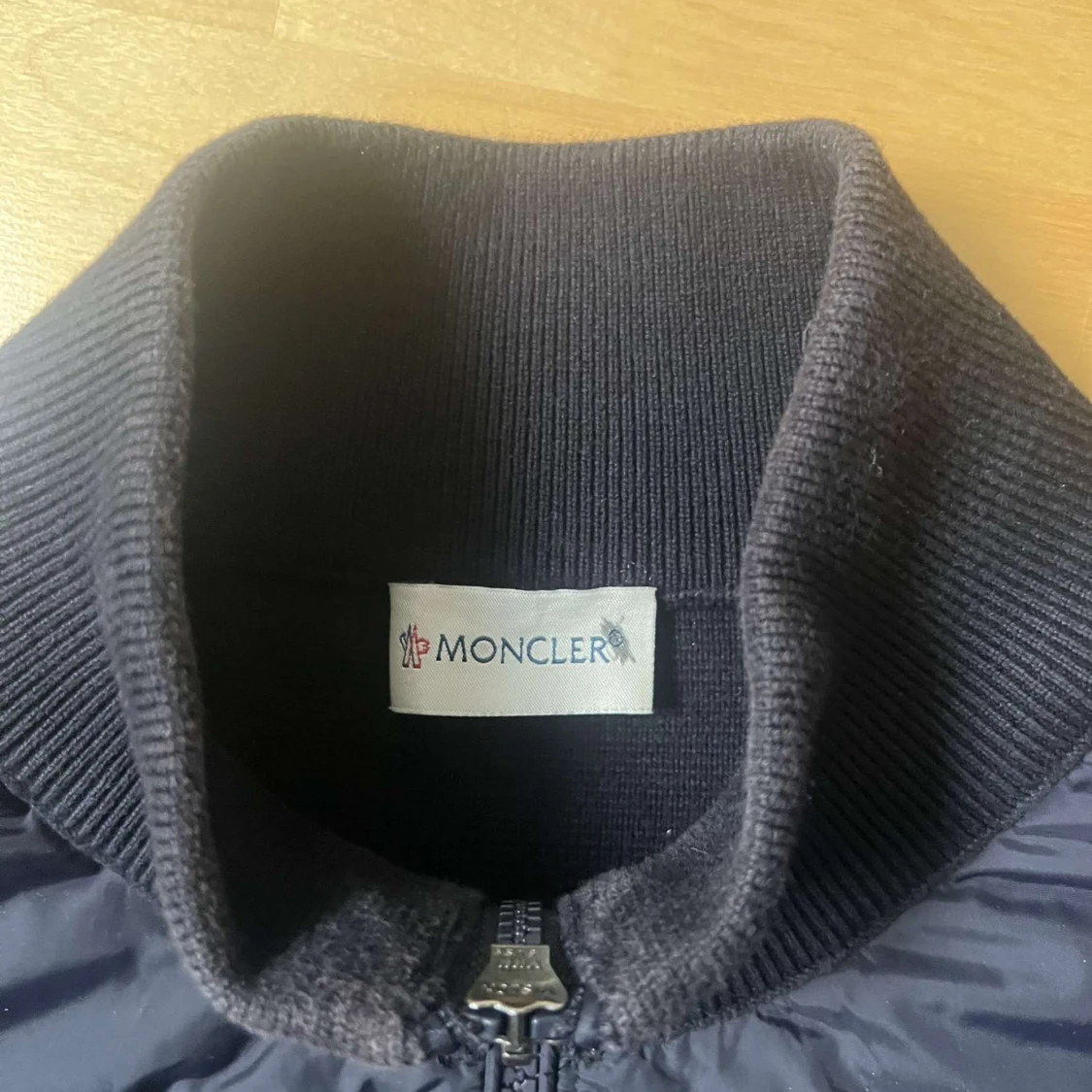 Snygg svart pufferjacka från Moncler med dragkedja och ribbad krage. Jackan har långa ärmar och två praktiska fickor med dragkedja framtill. Perfekt för kyligare dagar.