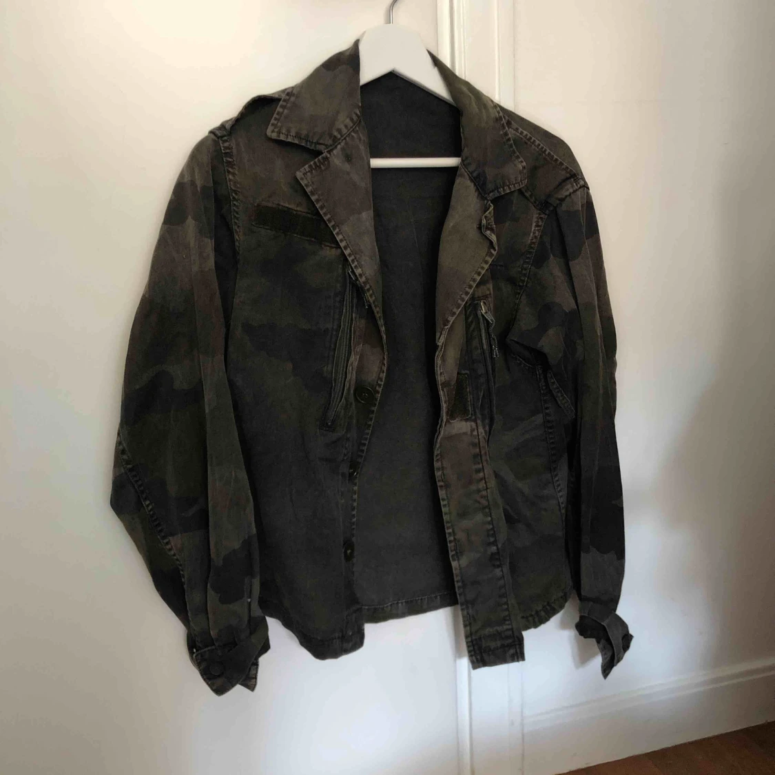 Kamouflage grön jacka från Brandy Melville. Jättebra skick. Jackan är one size och skulle säga att den passar allt ifrån en 34 till 38 beroende på hur man vill att sen ska sitta. Kan mötas upp i Stockholm annars exkl frakt✨🌸