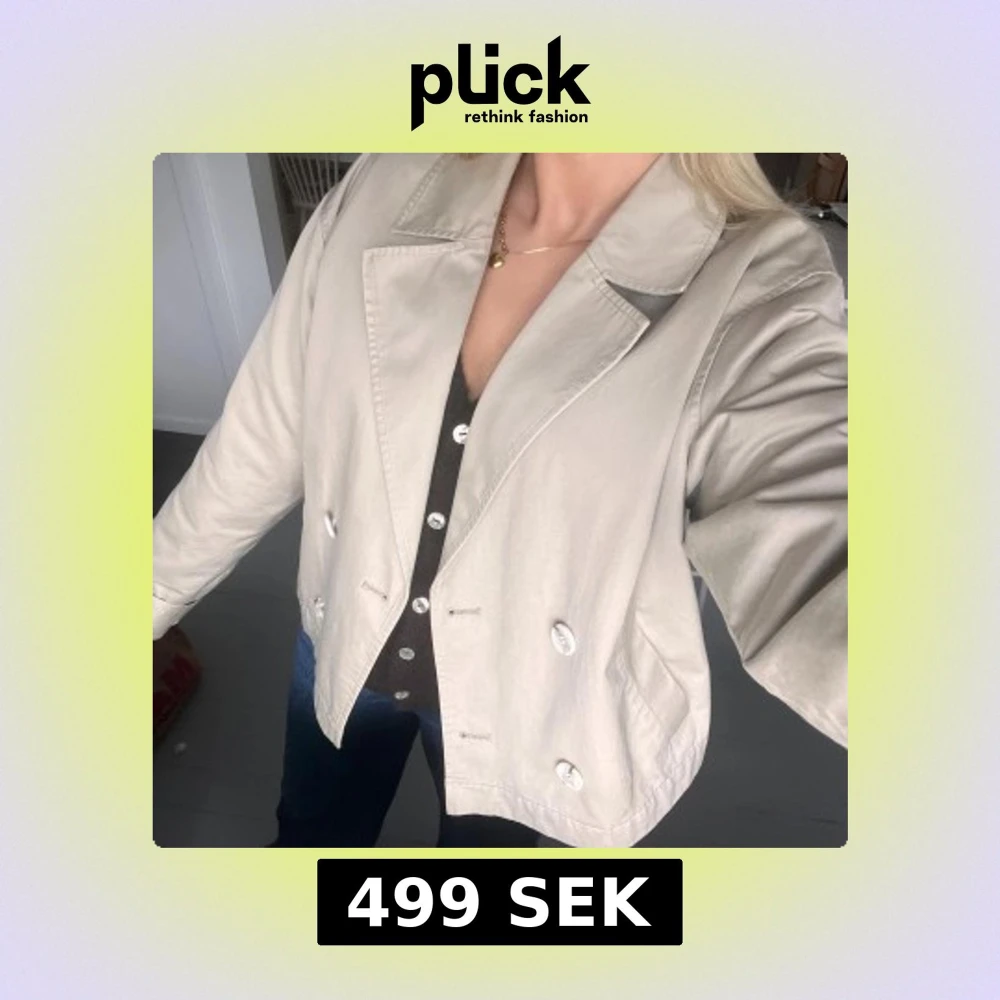 Snygg beige jacka i kort modell med dubbelknäppning och bred krage. Såå fin! Skriv för frågor eller fler bilder! 🥰I storlek m men passar er som har xs och s också! Köpte för ca 1000kr, pris kan diskuteras