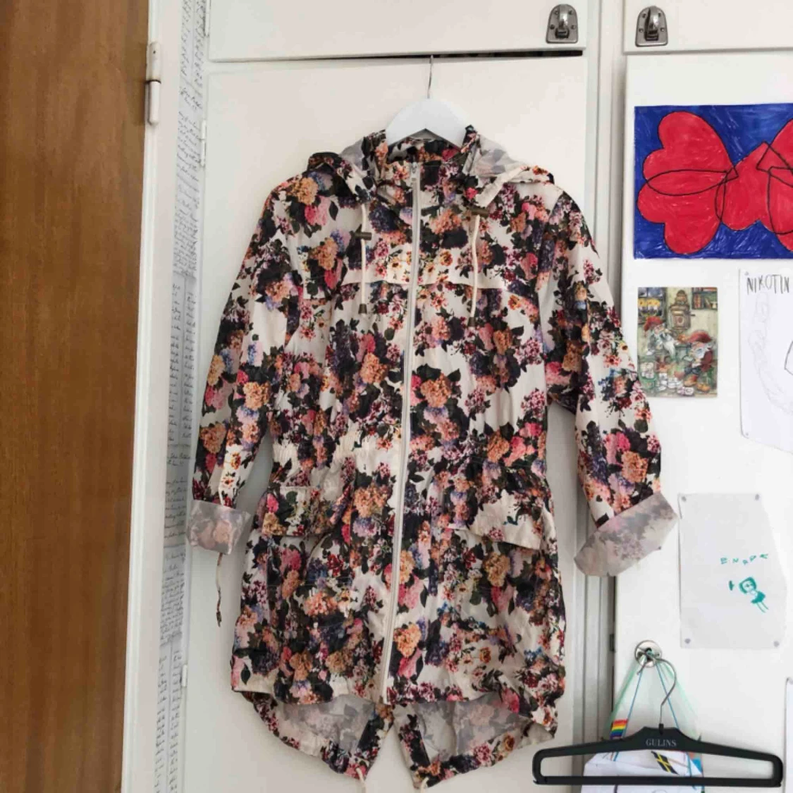 Så så så fin jacka!! Köpt på busfrö och är typ en vindjacka. Är väl inte den bästa i regn. Den går att reglera i Midlands, luvan och i slutet på den, den går ungefär till mitten av låret.