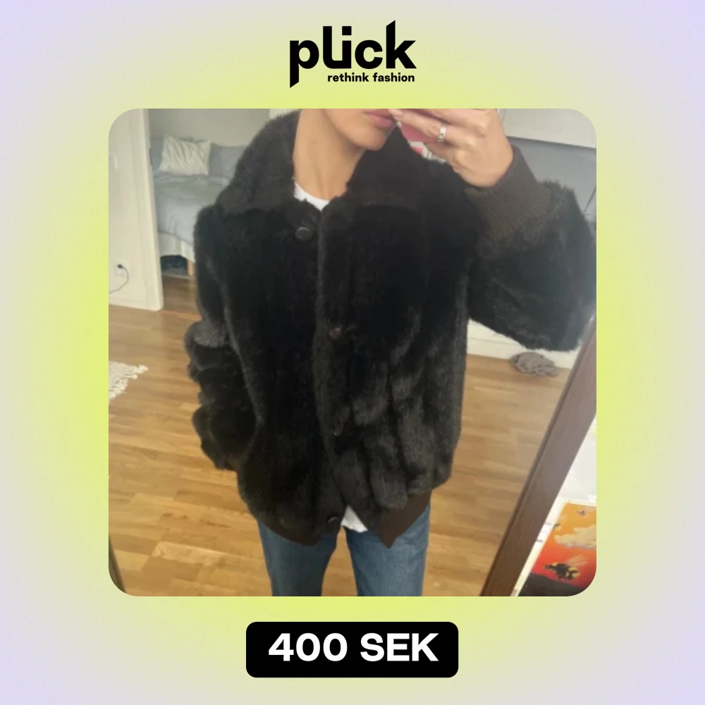 Så snygg fuskpäls jacka! Köpt secondhand i höstas. Mörkbrun nästan svart🐻 så fin!😍 storlek står inte, jag skulle säga att det är en S.