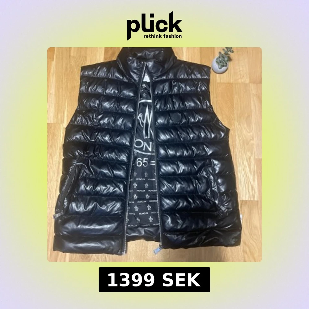 Snygg svart dunväst från Moncler med dragkedja och hög krage. Perfekt för kyligare dagar och ger en stilren look. Moncler-logga på bröstet och unikt serietidningsmönster på insidan. Pris går att diskutera!