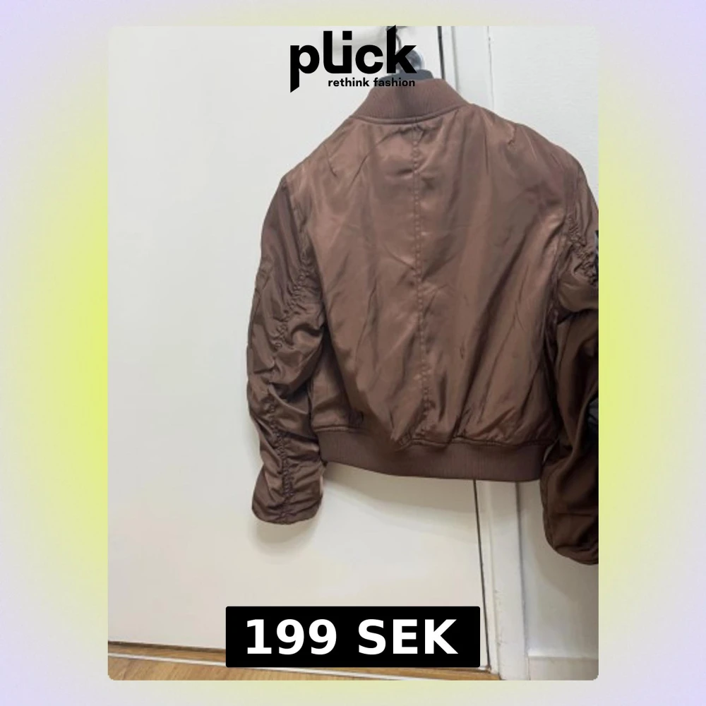 Snygg brun bomberjacka från FB Sister i storlek XS. Jackan har glansigt material, ribbade muddar, dragkedja framtill och coola detaljer som ficka med dragkedja på ärmen. Perfekt för dig som vill ha en trendig och stilren look.
