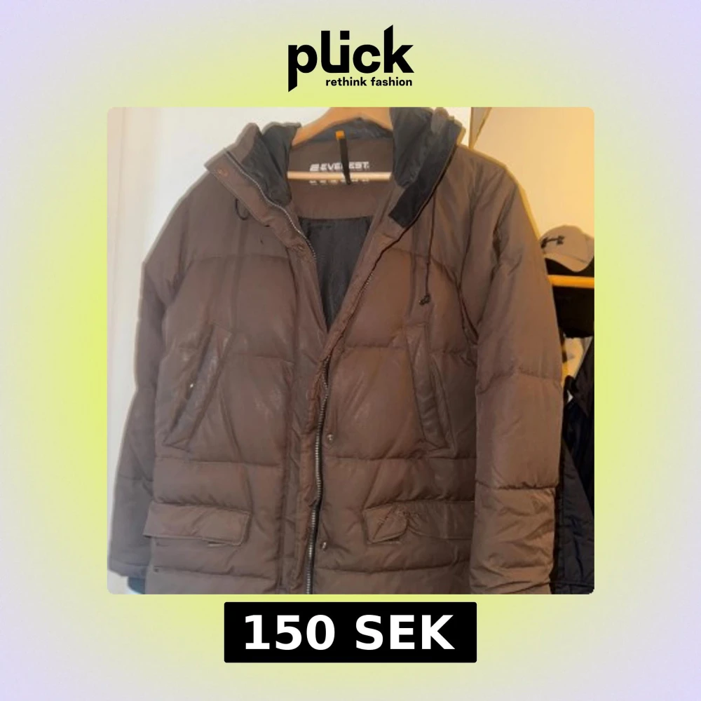Säljer en brun dunjacka från Everest i storlek 38. Jackan har en skön huva, dragkedja och stora fickor framtill. Yttermaterialet är nylon och fyllningen består av 50% dun och 50% fjäder. Perfekt för kalla dagar när du vill hålla värmen.