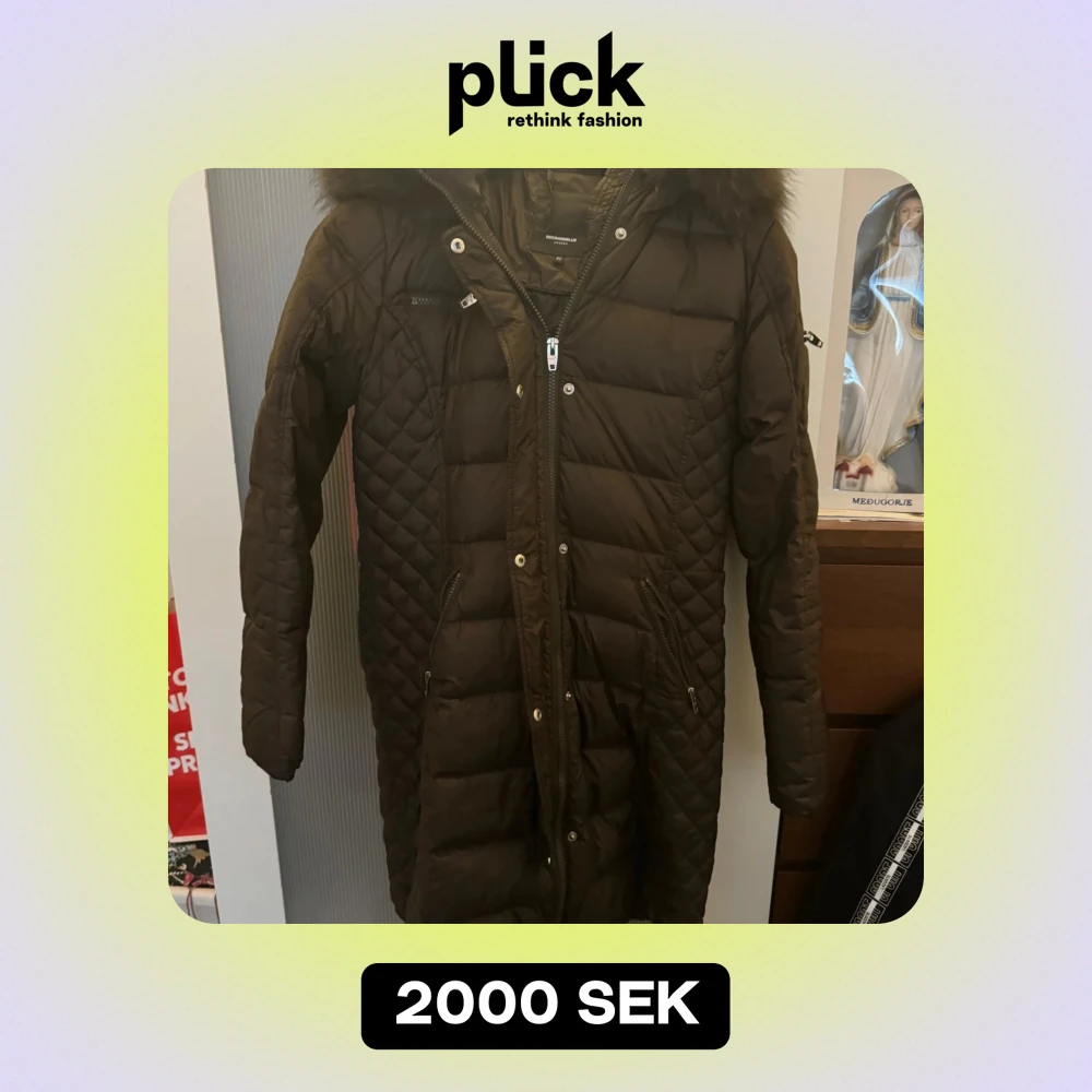 Brun dunjacka med pälskrage