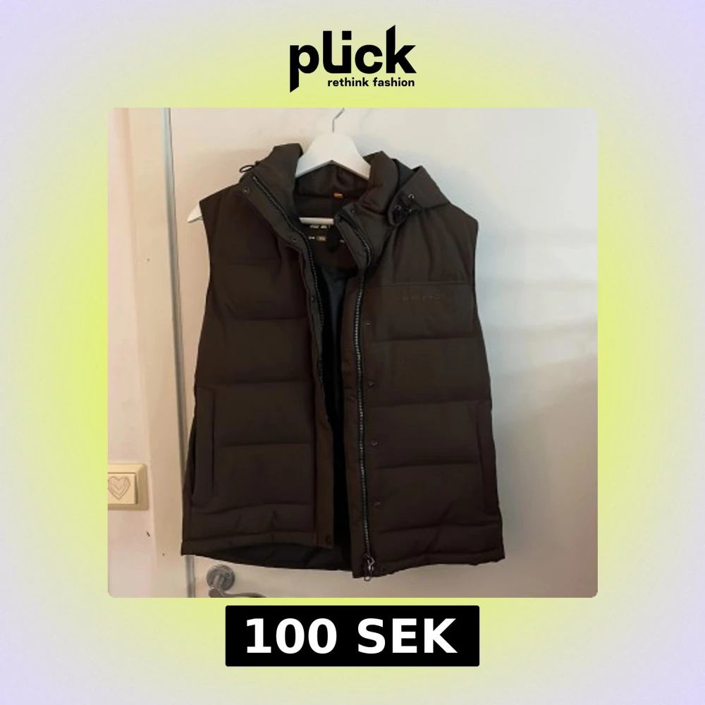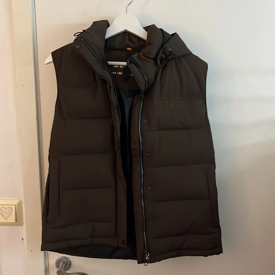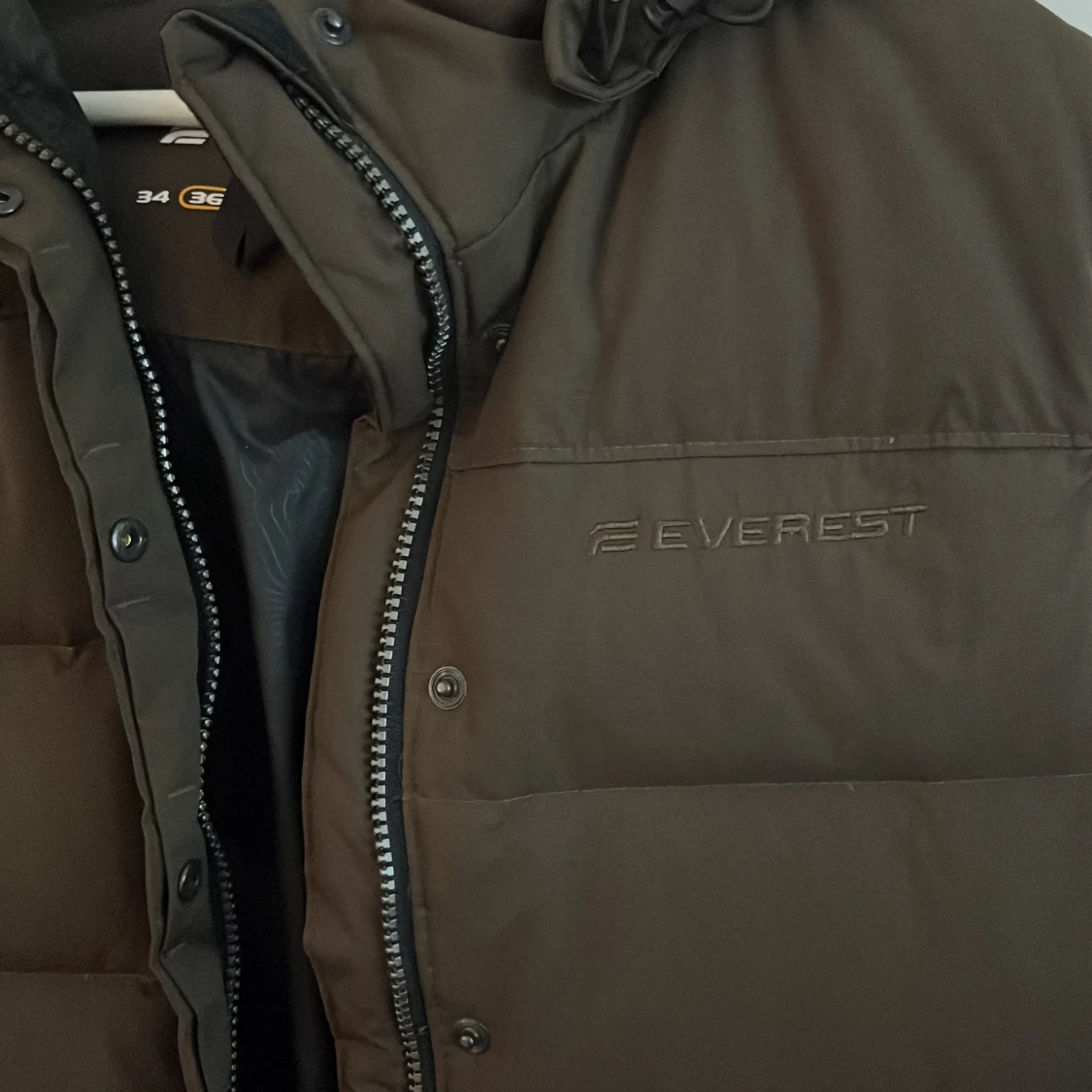 Säljer en brun dunväst från Everest med dragkedja och avtagbar huva. Västen är perfekt för kyligare dagar och har en stilren design med diskret logga på bröstet. Passar utmärkt för höst och vinter.