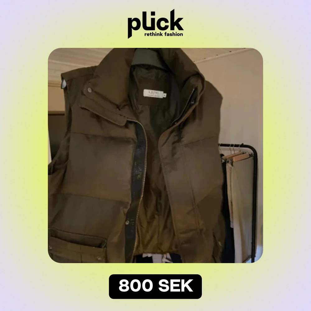 Säljer en snygg grön dunväst från Ljung i storlek M. Västen har en dragkedja och knappar framtill, vilket gör den perfekt för höst och vinter. Den är quiltad och ger en skön och varm känsla. Perfekt för lager-på-lager-stil!