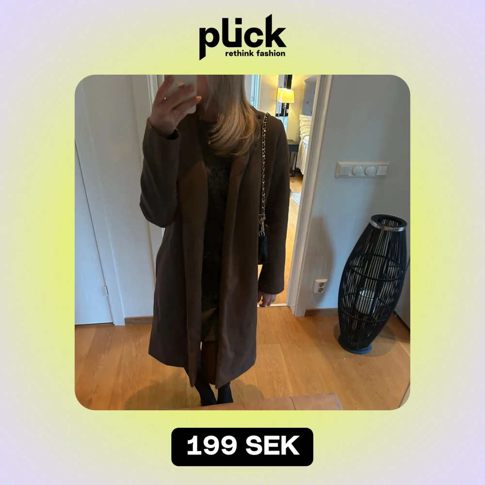 Säljer en stilren brun kappa i mycket bra skick. Perfekt för höst och vår, med långärmad design och normal passform.
