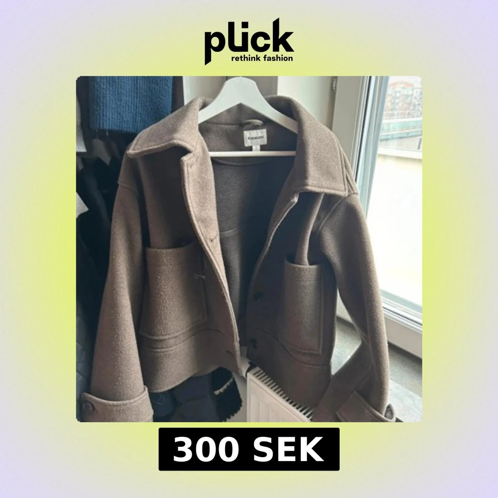 Snygg brun kappa från Kappahl i ullmix med stora fickor framtill och klassisk krage. Jackan har knappar både framtill och vid ärmsluten.