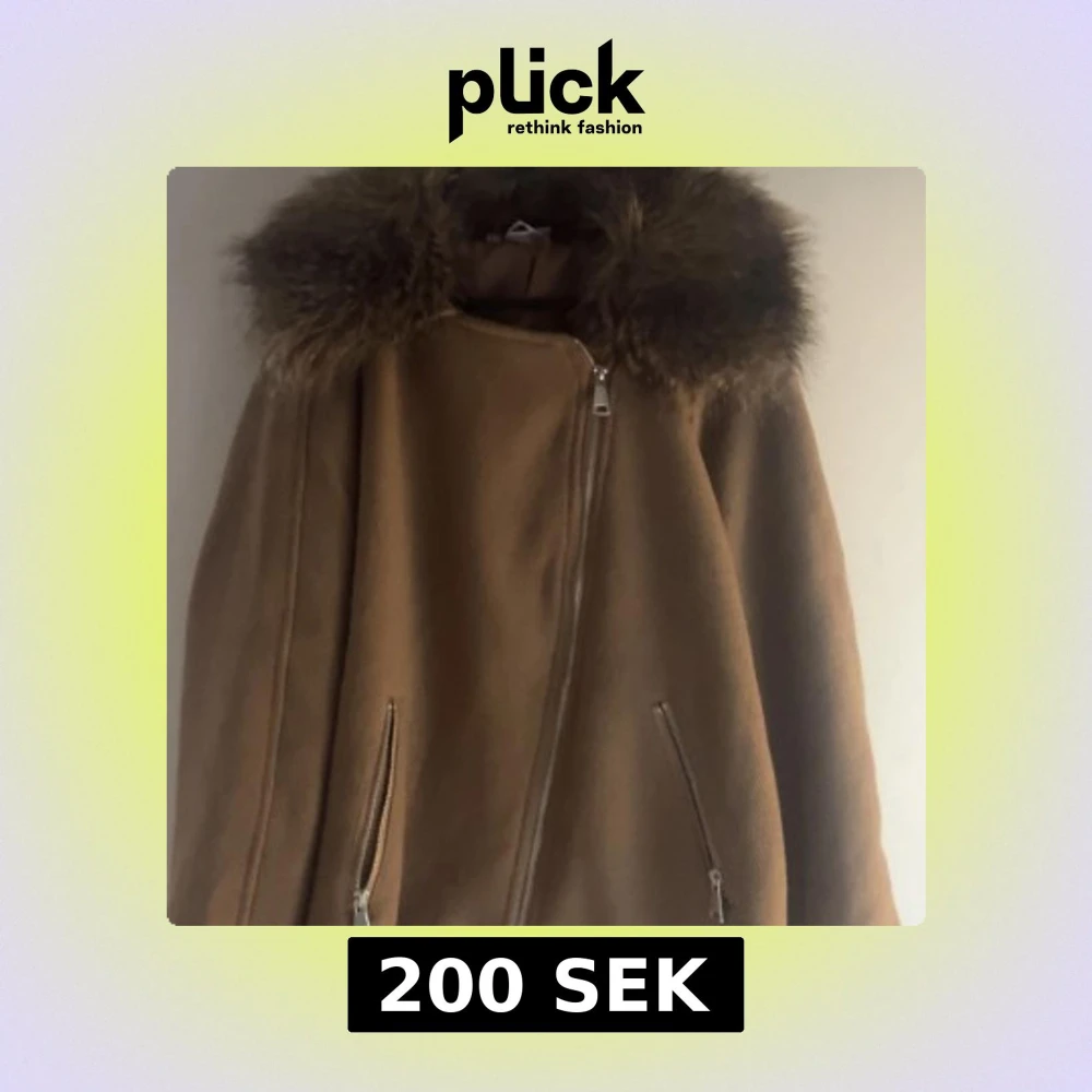 Snygg brun kappa med fuskpäls vid kragen och dragkedja framtill. Perfekt för kyliga dagar med sin stilrena design och praktiska fickor med dragkedjor.
