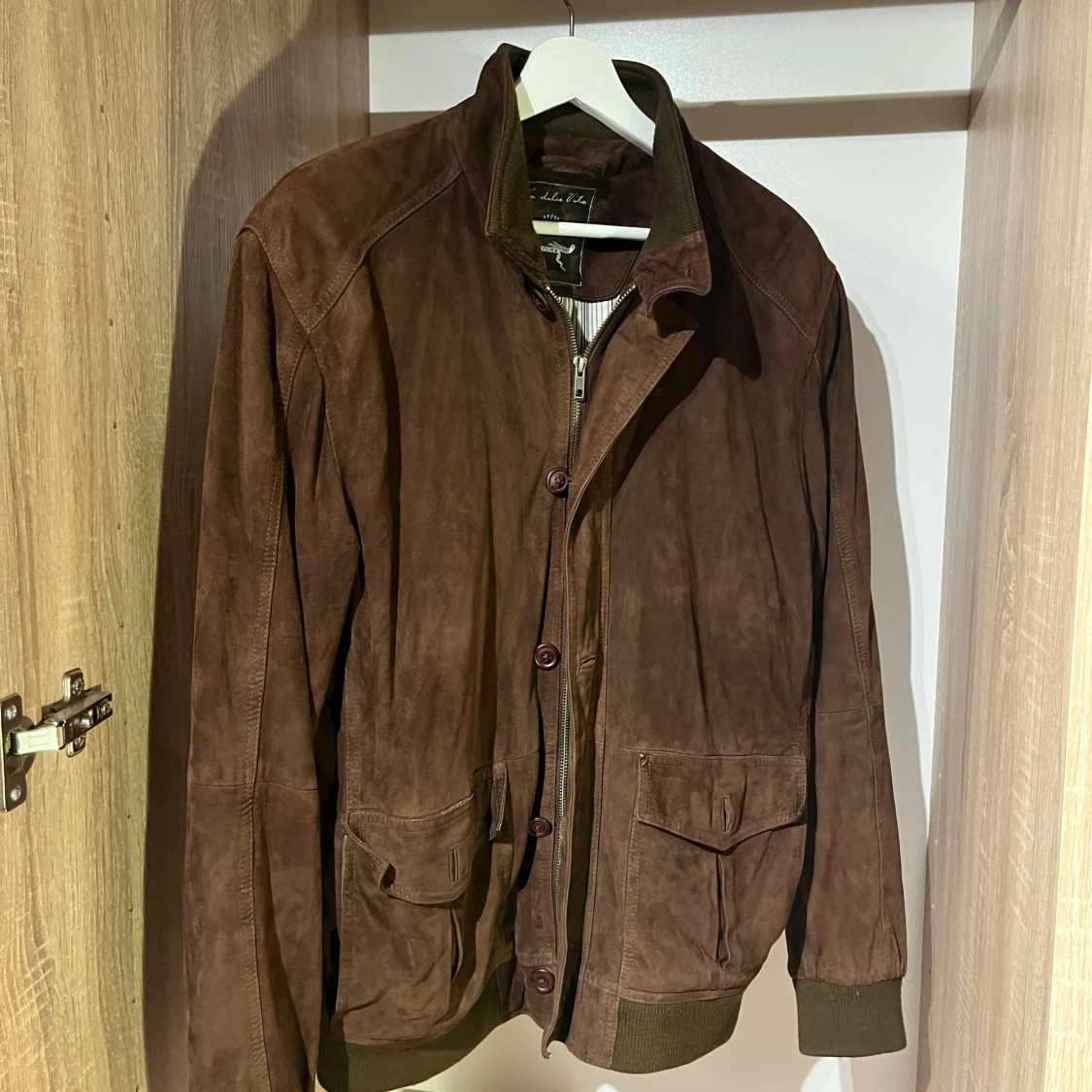Brun mockajacka, liknande som valstarino jacka. Strl 50 i nacken men passar 48 (M/L) sparsamt använd men spår på användning finns. Pris satt ex frakt