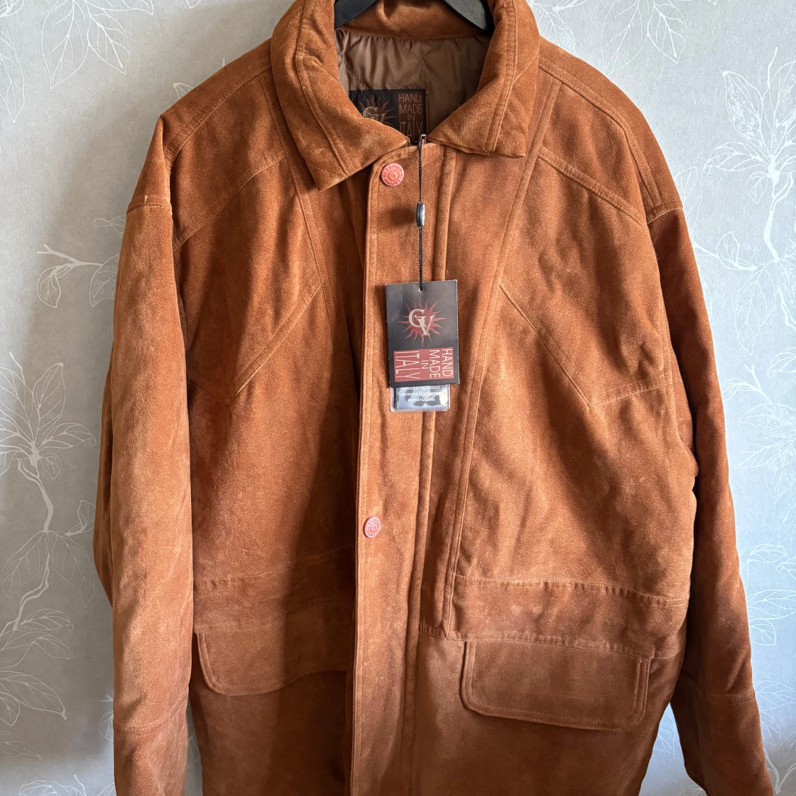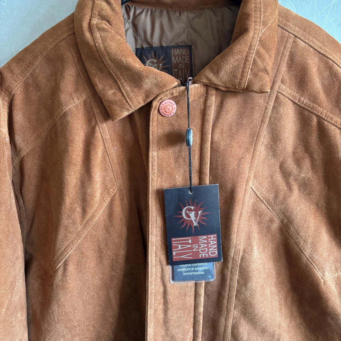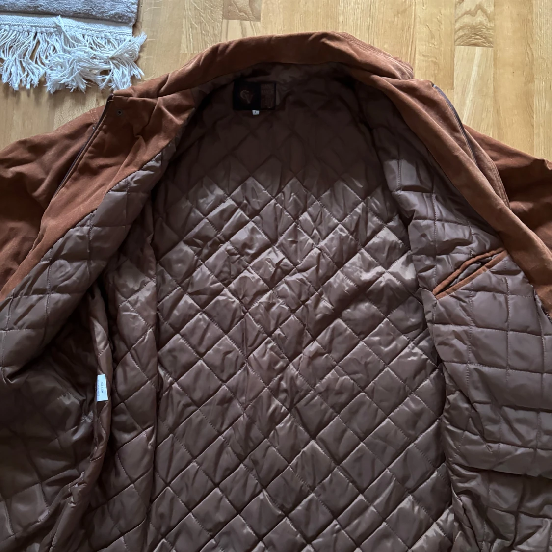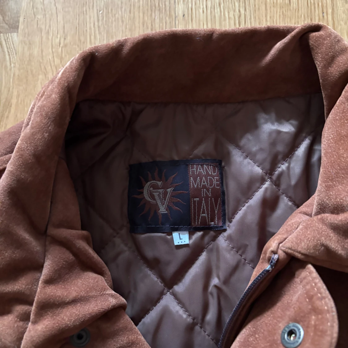 Säljer en snygg brun mockajacka från GV, handgjord i Italien. Jackan har en klassisk design med knappar framtill och en quiltad insida för extra komfort. Perfekt för höst och vår!