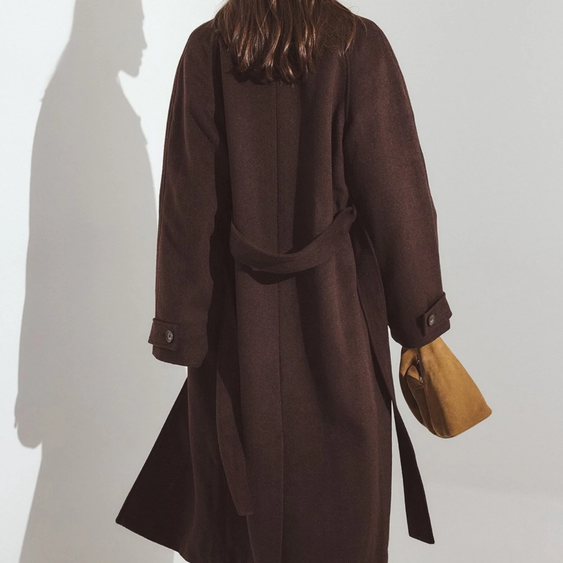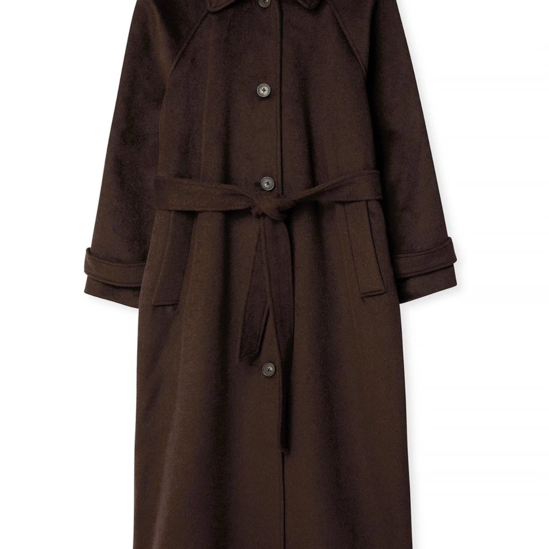 Mörkbrun lång kappa med bälte - oanvänd med prislapp