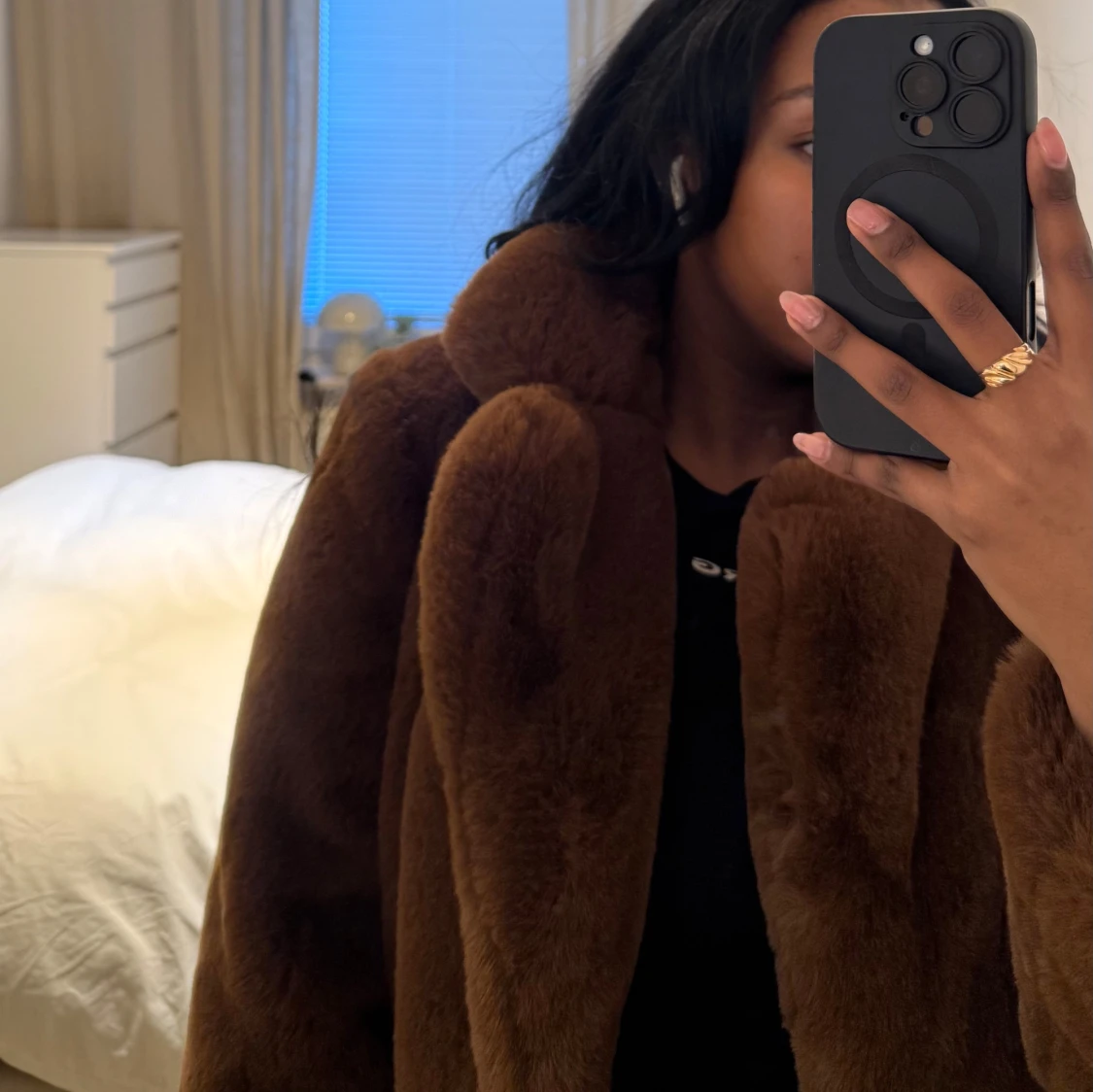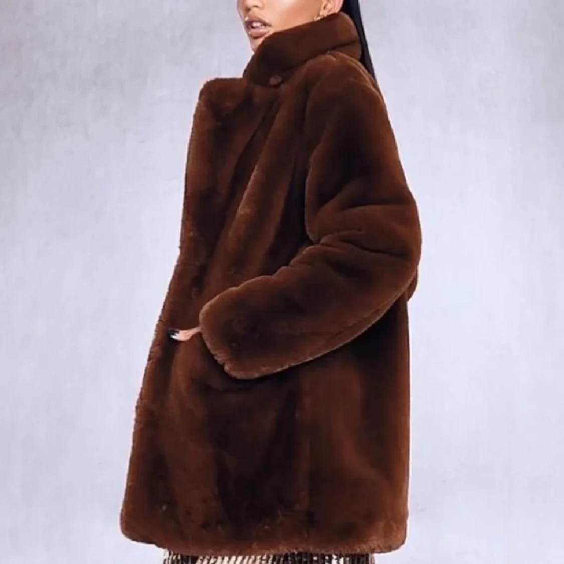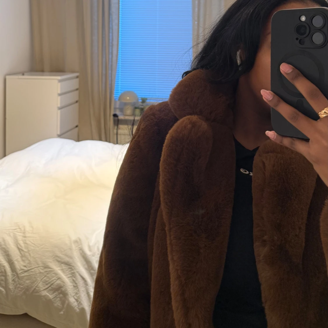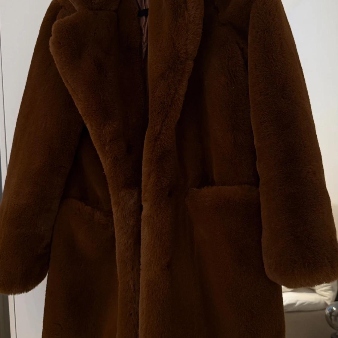 Säljer en lyxig brun pälsjacka med långärmad design. Jackan har en elegant och mjuk finish som ger en exklusiv känsla. Perfekt för att hålla sig varm och stilren under kyliga dagar.