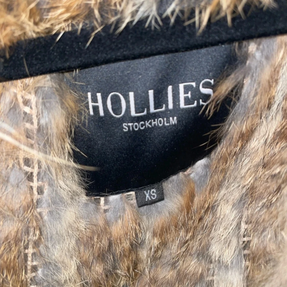 Säljer en lyxig brun pälsväst från Hollies. Västen har en mjuk och fluffig textur med ett stilrent mönster. Perfekt för att hålla sig varm och trendig under kyliga dagar. Passar utmärkt till både vardag och speciella tillfällen. Priset kan diskuteras!
