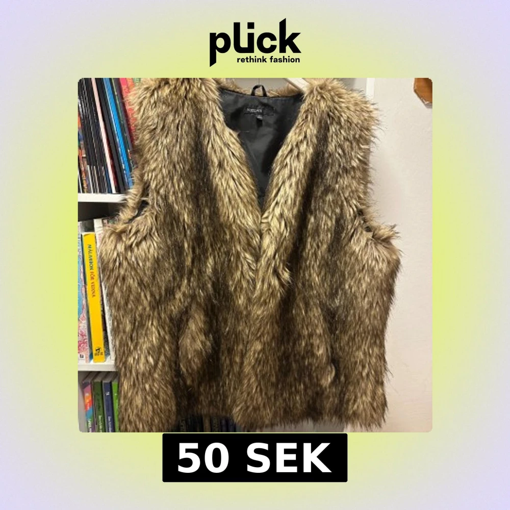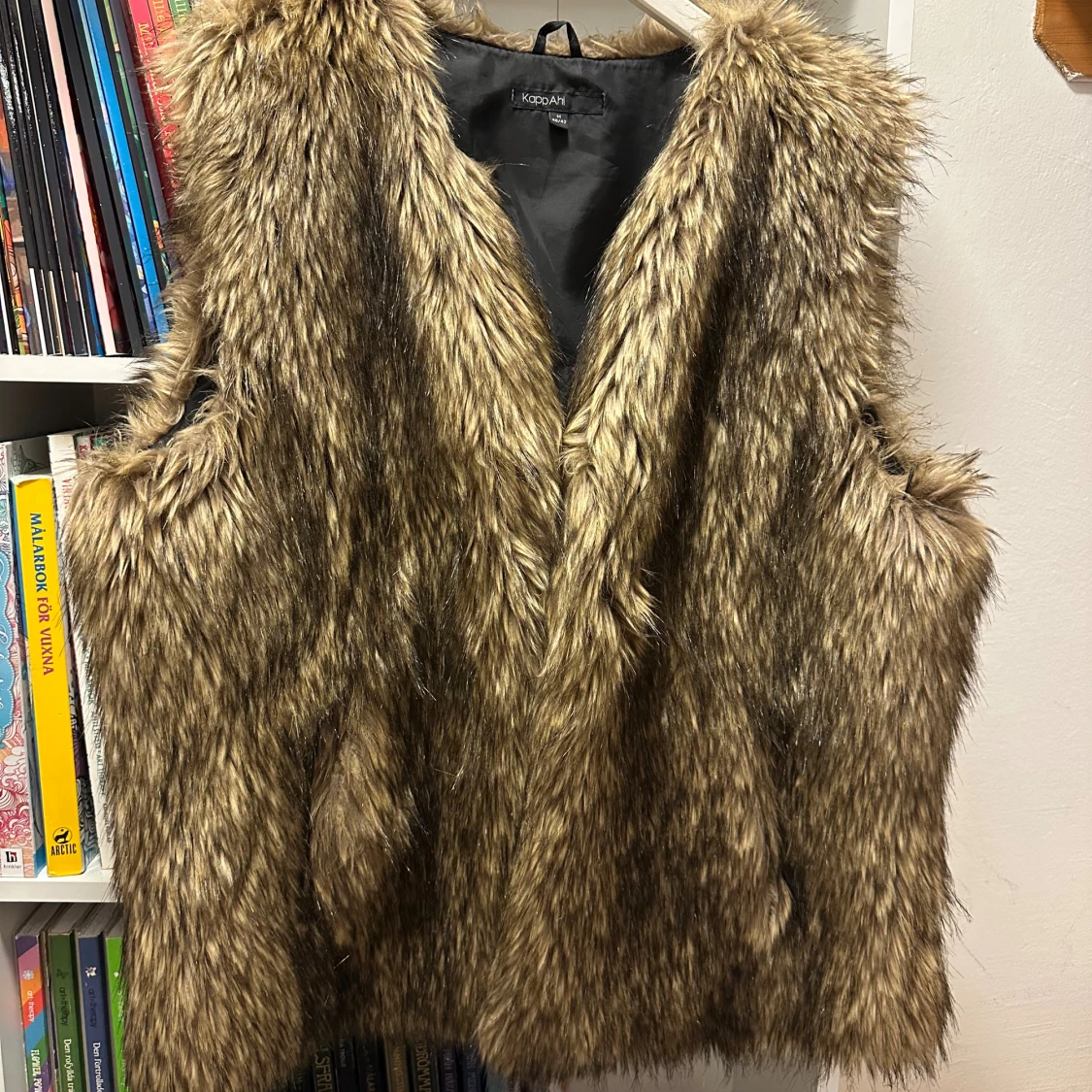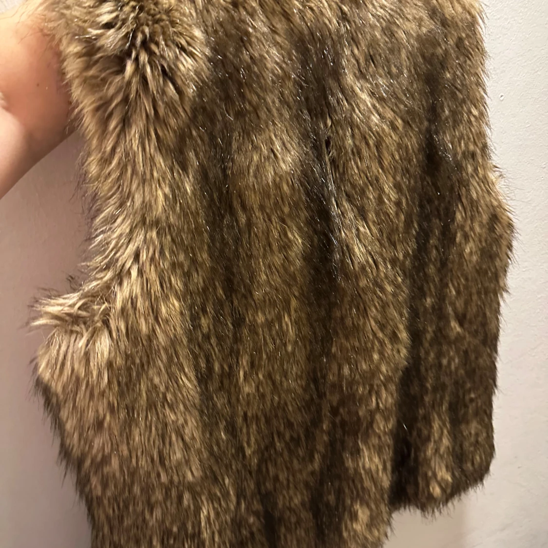 Säljer en fluffig och snygg brun pälsväst från KappAhl med mjukt foder på insidan. Västen har en naturlig pälslook med lite glansiga strån och är perfekt för att ge din outfit extra edge. Den är ärmlös och har en rak, loose passform.
