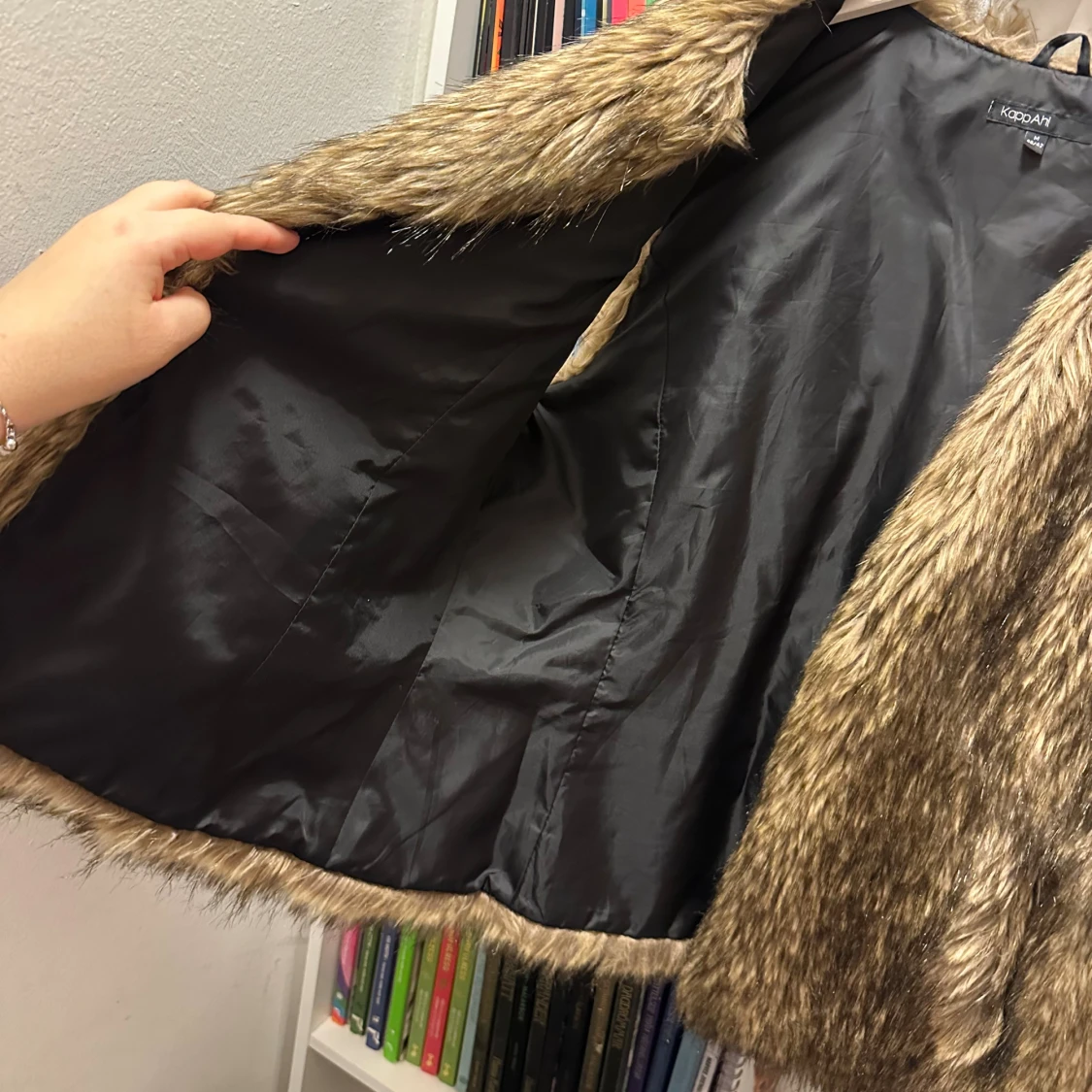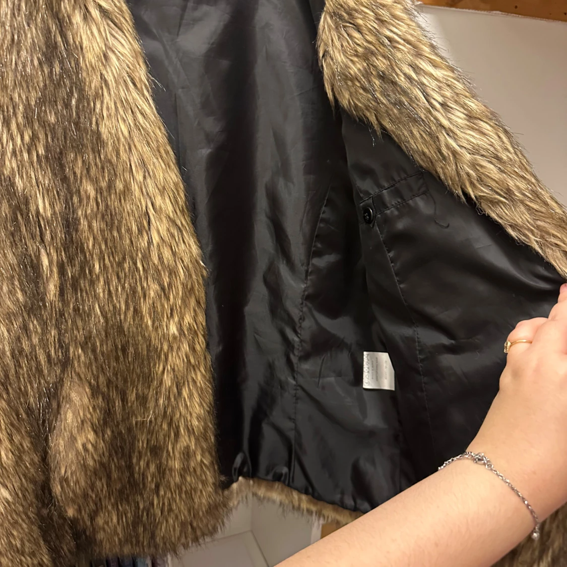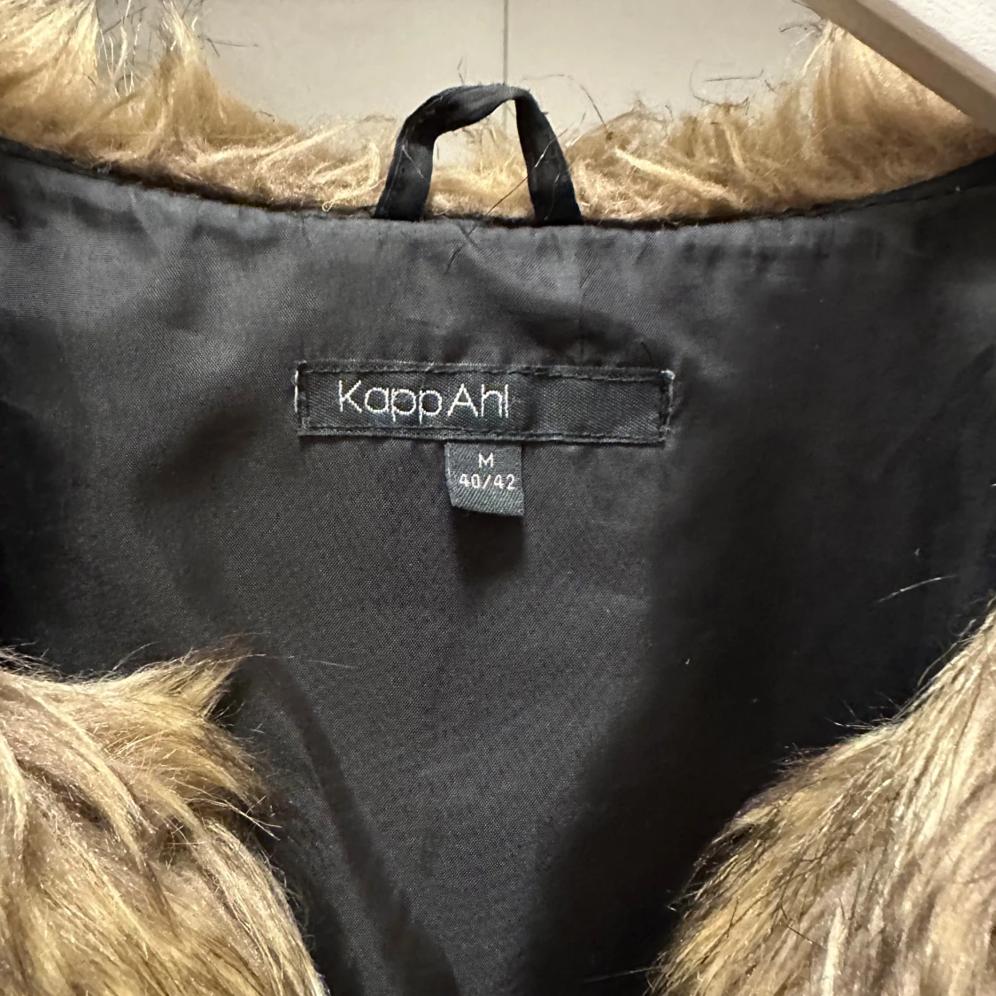 Säljer en fluffig och snygg brun pälsväst från KappAhl med mjukt foder på insidan. Västen har en naturlig pälslook med lite glansiga strån och är perfekt för att ge din outfit extra edge. Den är ärmlös och har en rak, loose passform.