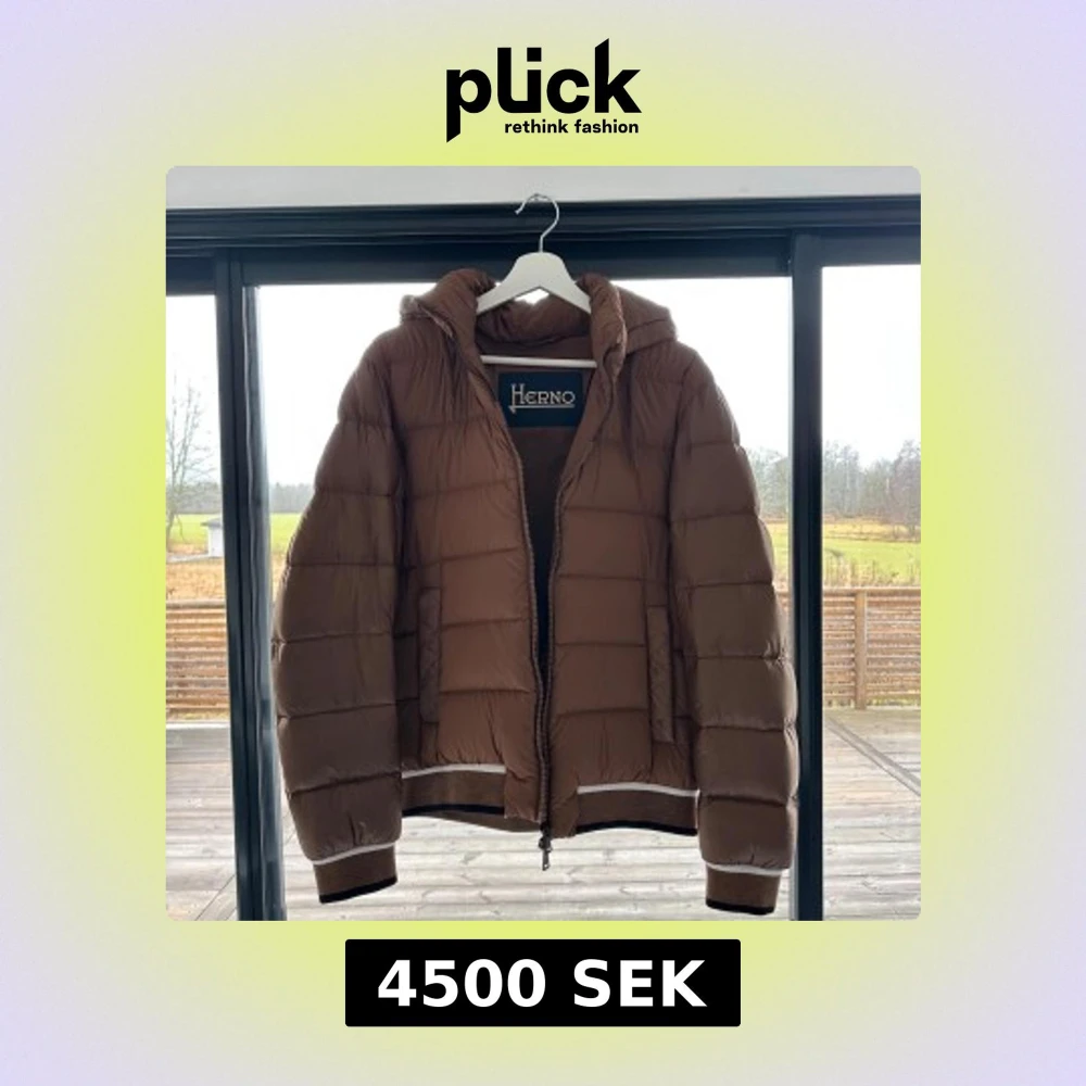 Säljer en snygg brun pufferjacka från Herno. Jackan har en dragkedja framtill och en mysig huva. Den är perfekt för kyligare dagar och har ribbade muddar vid ärmslut och nederkant för extra komfort. Köpt här på plick av Store enda kvitto finns!