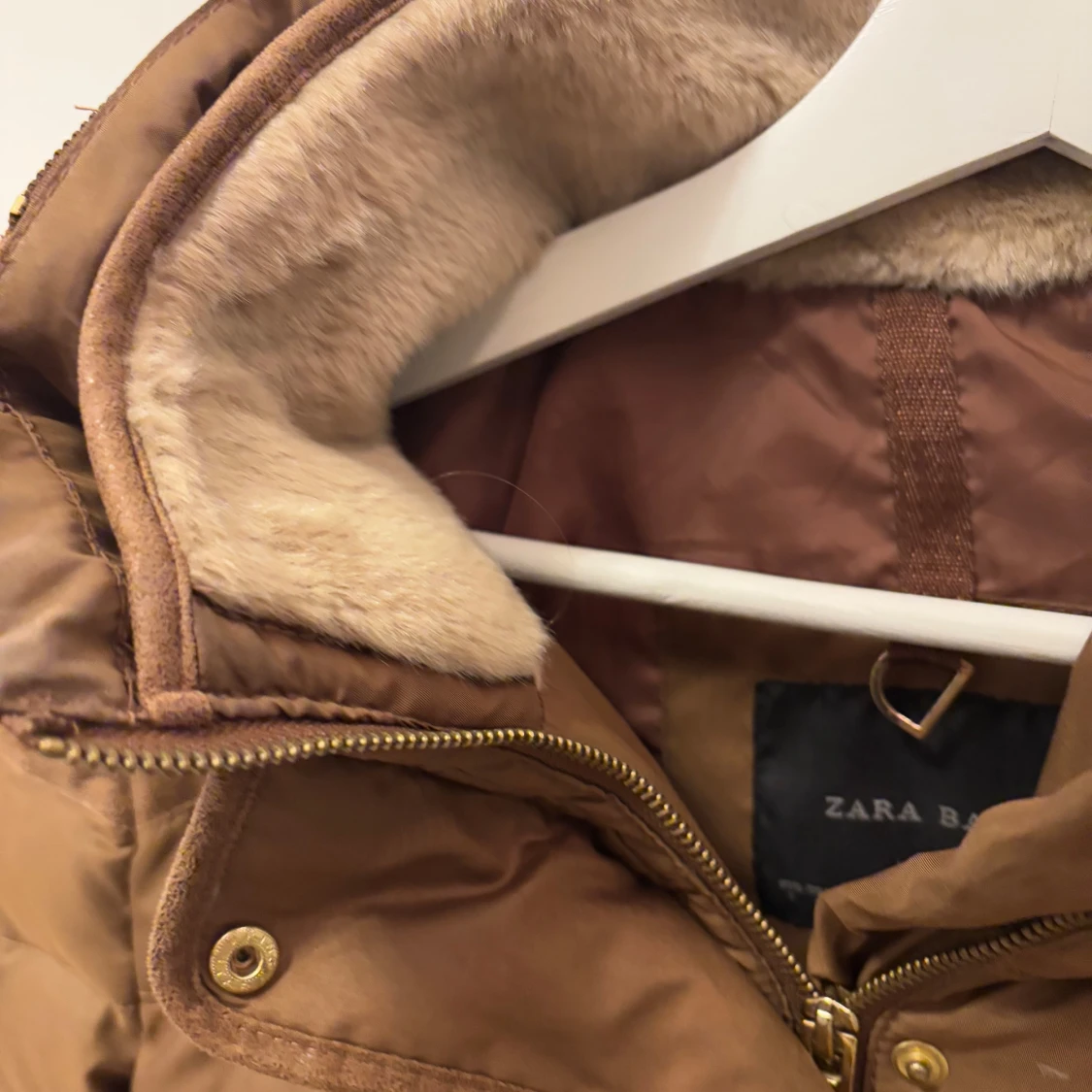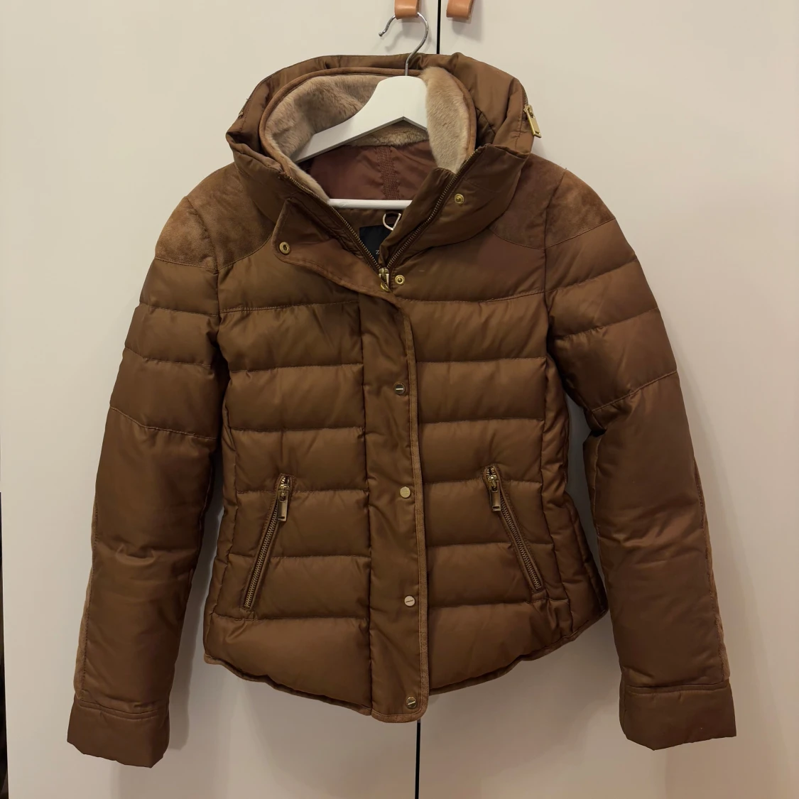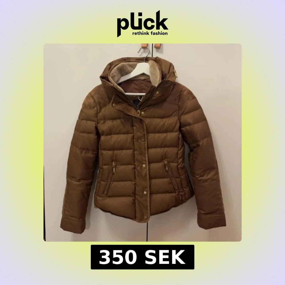 Så fin brun jacka med guld och mocka detaljer. Super varm och skön. Bra skick❣️