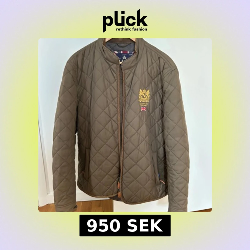 Säljer en stilren brun quiltad jacka från Morris med broderad logga på bröstet. Jackan har en dragkedja framtill och en klassisk krage. Perfekt för höst och vår. Nypris 2199 kr