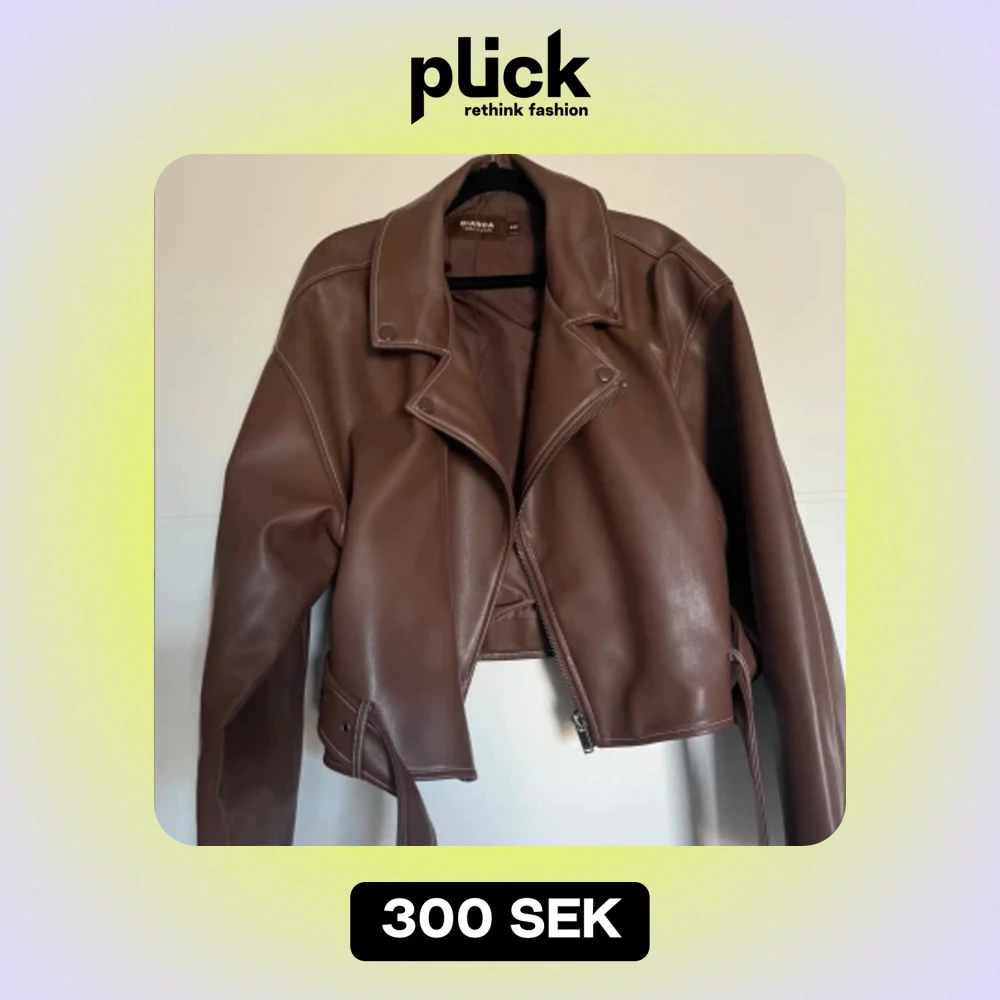 Säljer en brun skinnjacka från Nelly. Lite större i storlek och i en boxig, kort modell. I mycket bra skick, bara använd fåtal gånger.