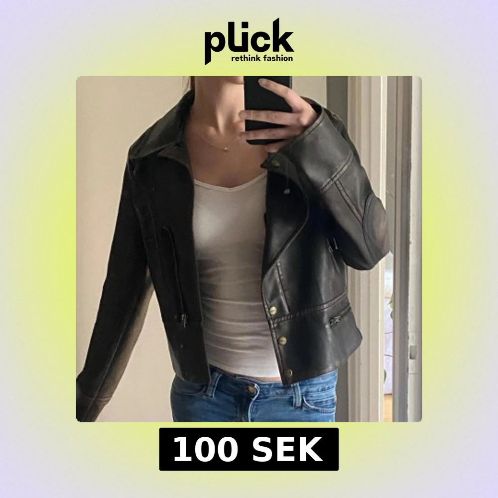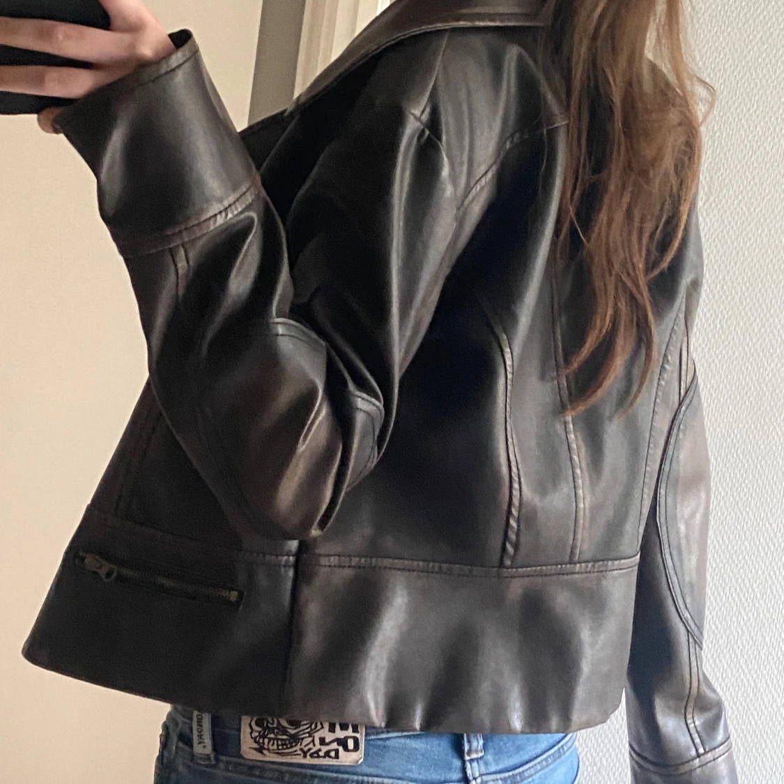Snygg brun skinnjacka från Amisu i klassisk bikerstil. Lite kortare i längden. Typ aldrig använd!