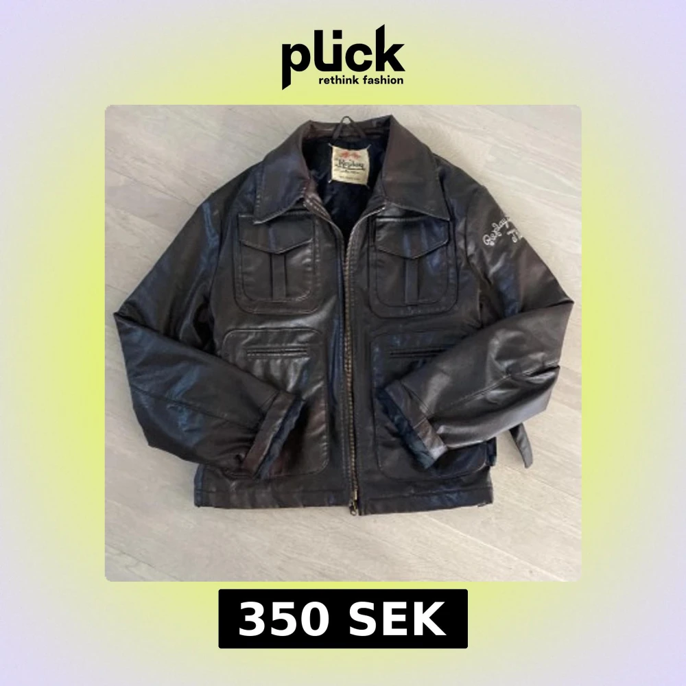 Säljer en snygg brun skinnjacka från Replay med dragkedja och broderad text på ärmen. Jackan har en klassisk krage och flera fickor framtill. Perfekt för en cool look!