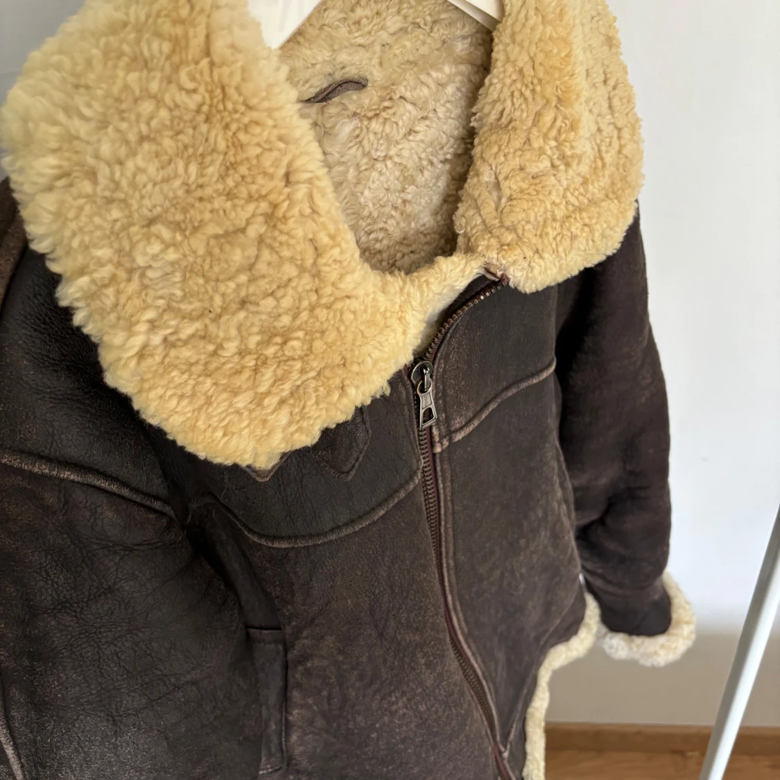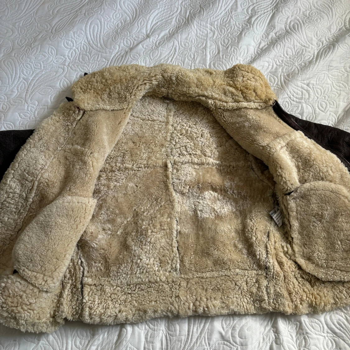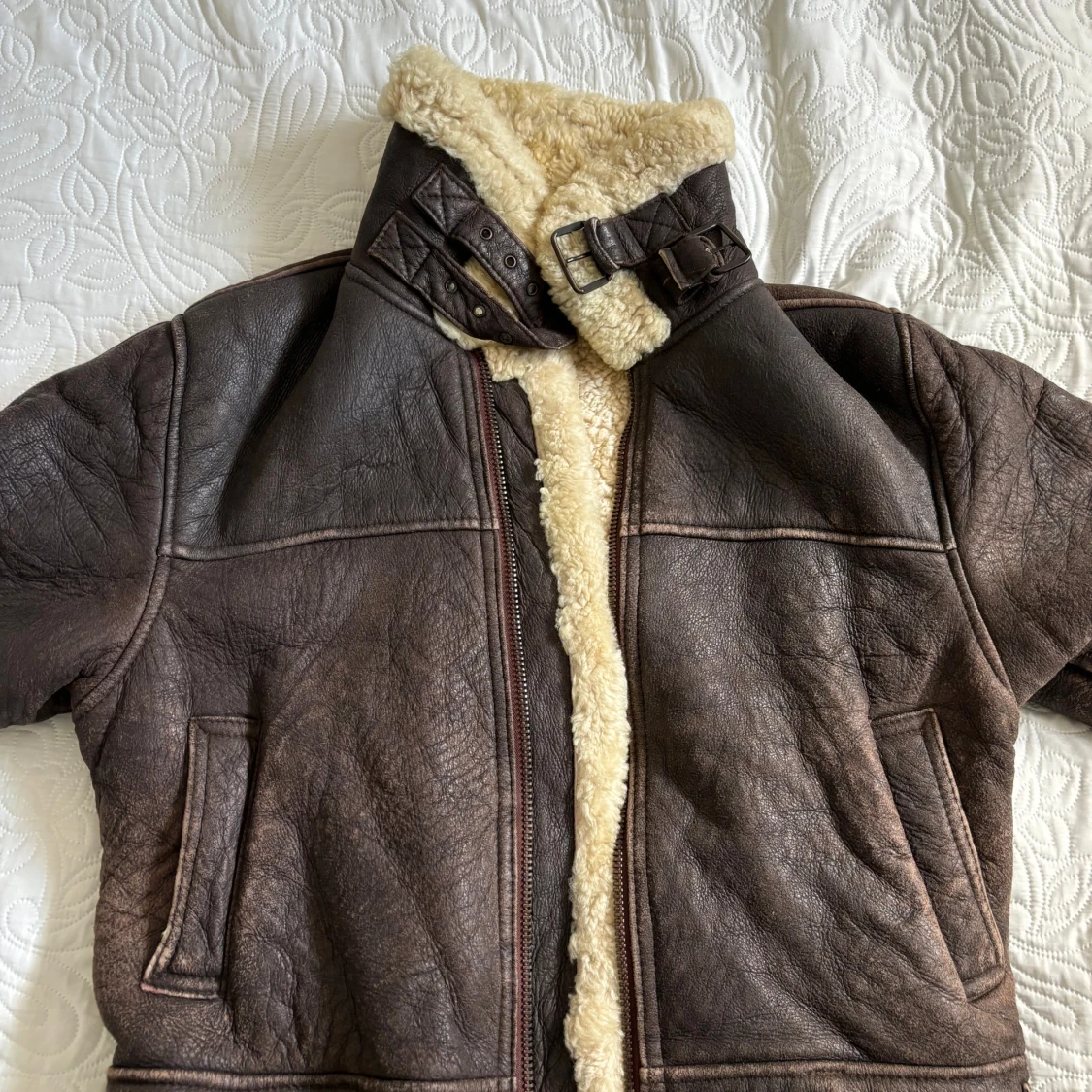 Säljer en snygg brun läderjacka med mysigt foder. Jackan har en cool vintage look med bälte vid kragen och dragkedja framtill. Gjord av 100% äkta läder. Perfekt för kalla dagar när du vill hålla stilen. Passar perfekt för höst och vinter! med lite omvårdnad och god hänsyn blir den utmärkt!