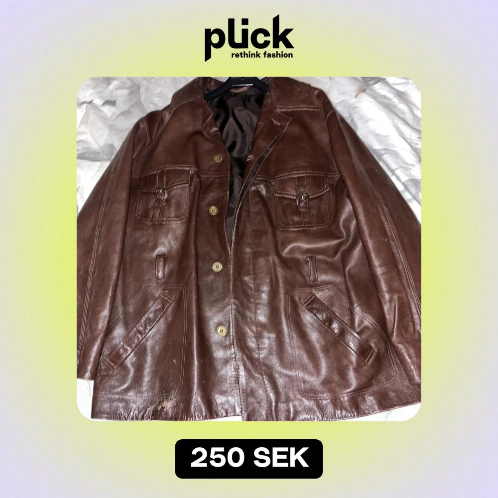 Säljer en snygg brun skinnjacka i bra skick. Den har en klassisk stil med knappar framtill och flera praktiska fickor. Perfekt för höst och vår, och ger en cool look till vilken outfit som helst. Passar både till vardags och lite finare tillfällen.