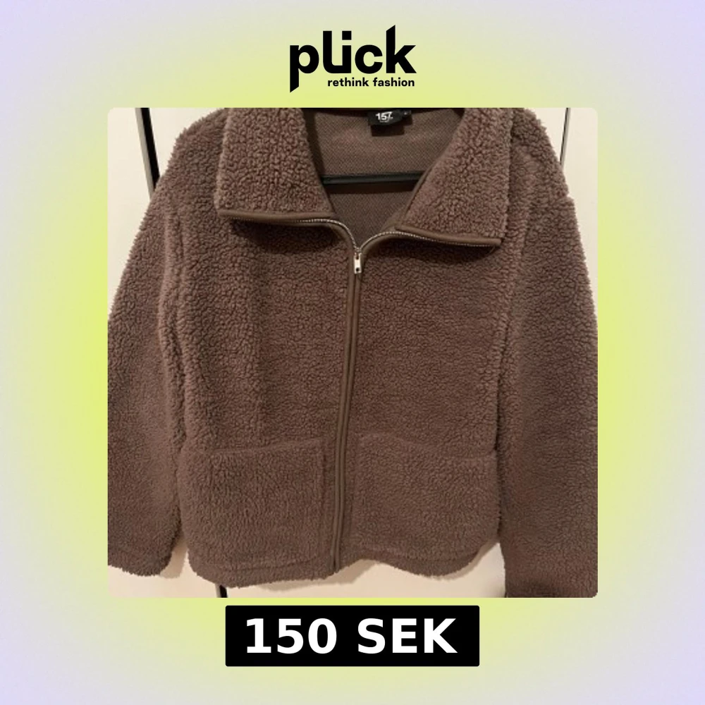 Mysig brun teddyjacka från 157 i storlek S. Jackan har en hög krage, dragkedja framtill och två stora fickor. Perfekt för kyliga dagar och ger en chill vibe med sin oversized look och fluffiga material. Har endast använts en gång.