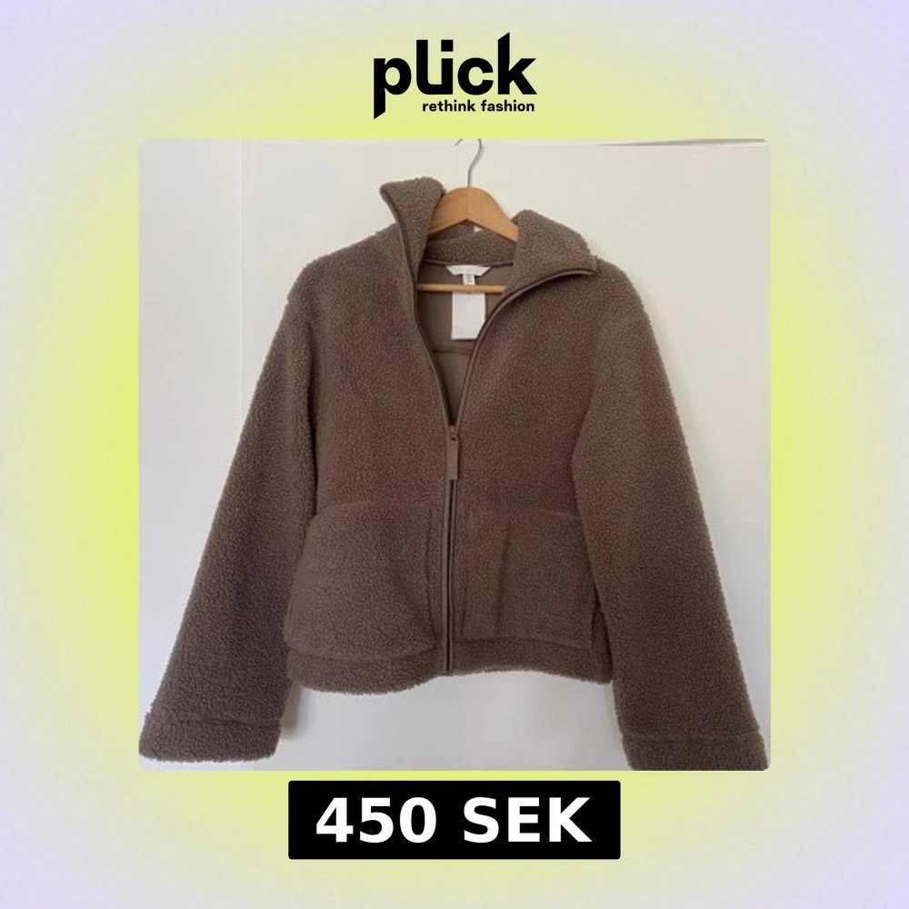 Mysig brun teddyjacka från H&M i storlek S. Jackan har dragkedja framtill, två stora fickor och hög krage. Perfekt för kyliga dagar när du vill vara både varm och snygg. Jackan har en loose passform och är tillverkad i mjuk fleece.
