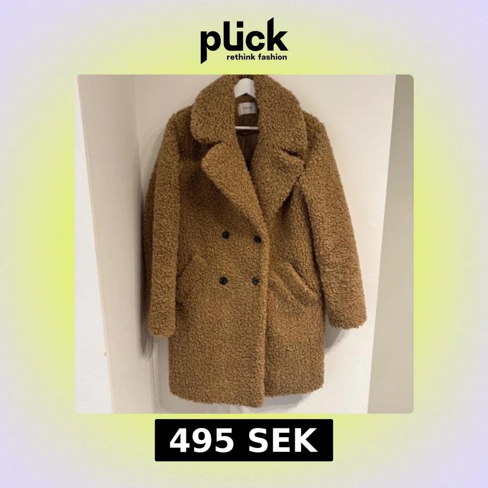 New. No sign of use. Säljer en brun teddyjacka med bred krage och dubbelknäppning framtill. Jackan har två sidofickor och är helfodrad med slät insida. Den har en loose passform och är perfekt för kalla dagar. Färgen är varm brun och materialet är mjukt teddy.