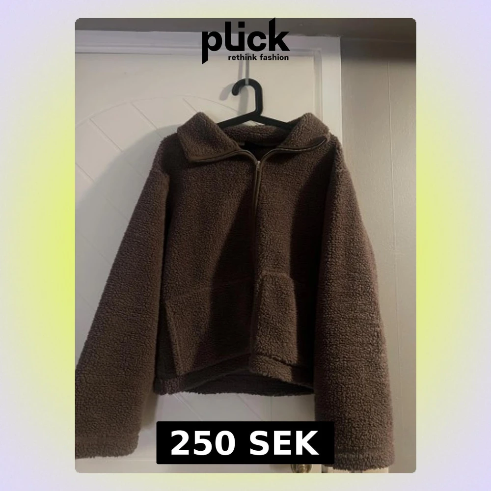 Mysig brun teddyjacka med krage och hel dragkedja framtill.