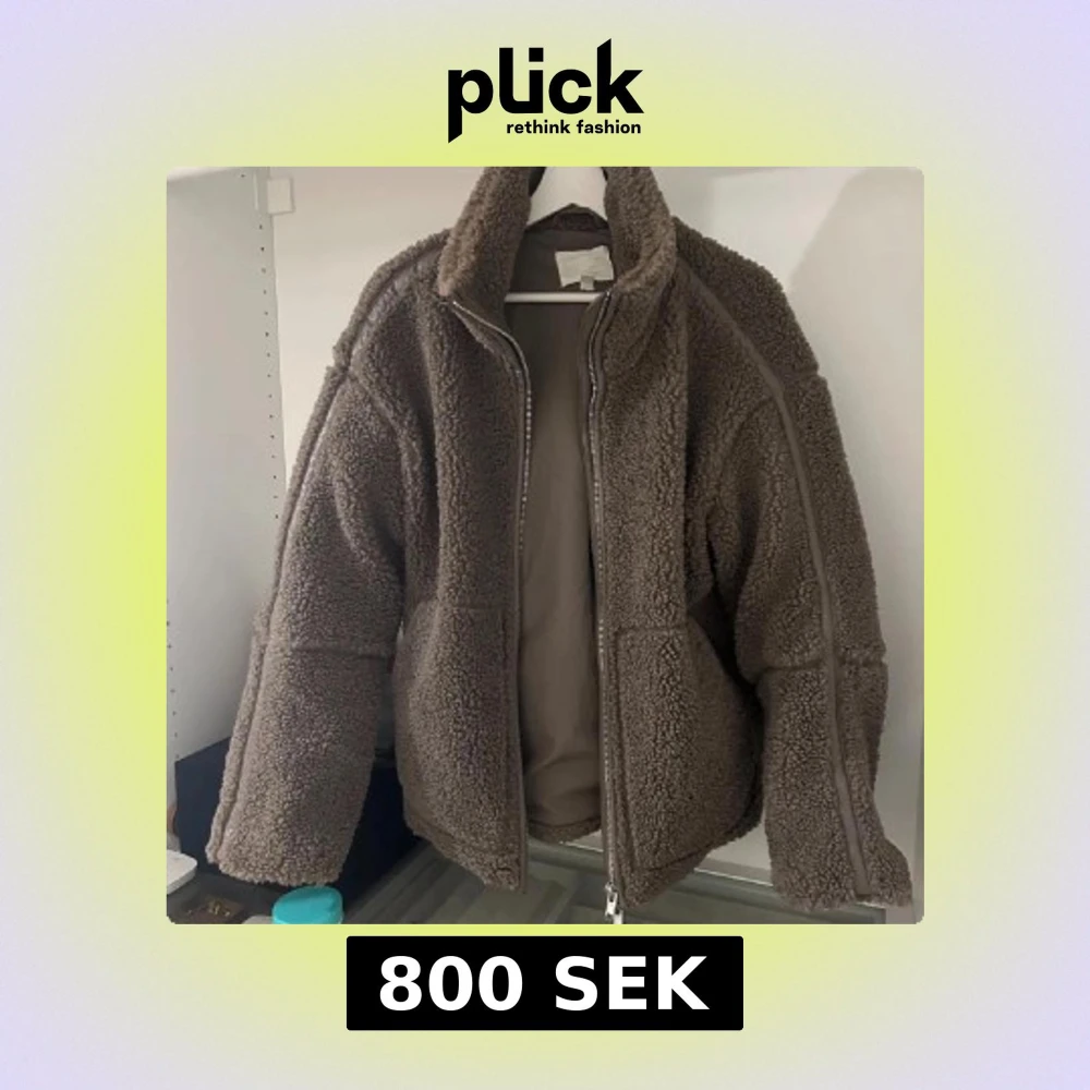 Mysig brun teddyjacka med hög krage och grov dragkedja framtill. Jackan har en loose passform och är tillverkad i fluffigt teddy-material som håller dig varm. Perfekt för kyliga dagar och har en enkel, stilren look.